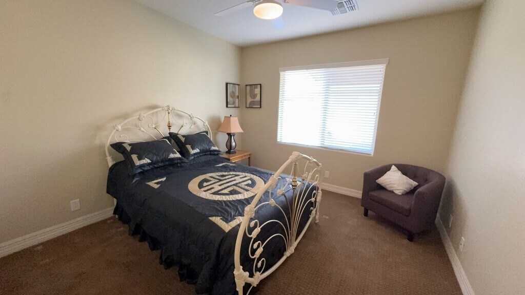 A stunning 2 bedroom, 2 bath home in Sunland Springs Village is now on the market! Offering great curb appeal with easy-care desert landscaping, artificial turf, and a 2-car garage, this home has everything you’re looking for. Step inside to an open floor plan featuring high ceilings, tile flooring, and a neutral color palette throughout. The beautiful kitchen includes abundant cabinetry with crown molding, granite countertops, stainless steel appliances, a pantry, and a cozy breakfast nook. The primary suite offers plush carpeting, a walk-in closet, and an ensuite bath with dual sinks. The inviting backyard with its covered patio is the perfect spot to enjoy a summer barbecue with family and friends. The price is for an unfurnished home. Please add $200 more for furnished
