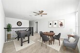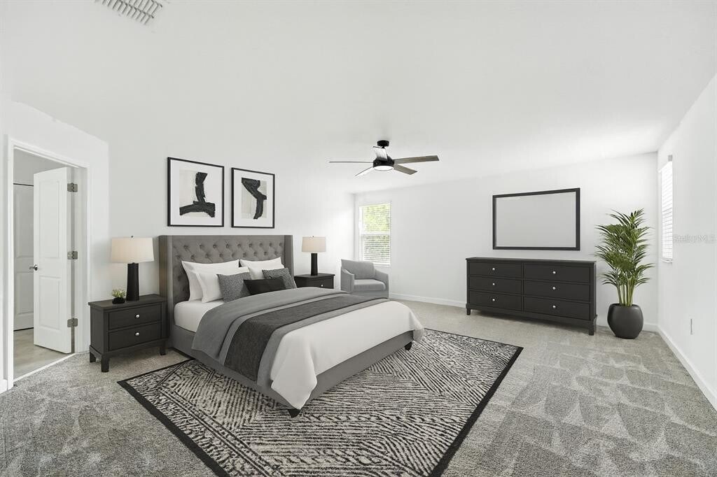 One or more photo(s) has been virtually staged. Welcome to this spacious two-story residence combines modern comfort,functional elegance,and thoughtful design. Step inside the main home,where you are greeted by an open-concept layout filled with natural light. The gourmet kitchen boasts quartz countertops,42" cabinetry,stainless steel appliances,a large center island,and a walk-in pantry,seamlessly flowing into the expansive family room and dining area. Sliding glass doors lead to the outdoor living space,perfect for entertaining. Upstairs you’ll find a luxurious owner’s suite with a spa-like bathroom and oversized walk-in closet,plus additional secondary bedrooms,a versatile loft,and a conveniently located laundry room. After a long day,the home’s design creates the perfect atmosphere to unwind. The spacious family room invites you to relax with loved ones,while the private owner’s suite offers a peaceful retreat with serene views. Whether you are hosting gatherings,enjoying a cozy movie night,or sipping coffee in the morning light,the main living areas are designed to blend comfort and style,making everyday living feel like a resort experience. Additional features include a 2-car garage,energy-efficient construction,solar panels for significant savings on energy bills,smart-home technology,and access to Storey Park’s exclusive amenities,including clubhouse,resort-style pool,fitness center,parks,and walking trails. Key Features: • 4 Bedrooms + Loft • 2 Full Bathrooms + 1 Half Bathroom • Approx. 3,000+ Sq. Ft. Living Area • 2-Car Garage • Solar panels for long-term energy savings • Located in the highly sought-after Lake Nona community of Storey Park This is more than just a home—it’s a lifestyle designed for today’s families,offering the perfect balance of comfort,style,and convenience.