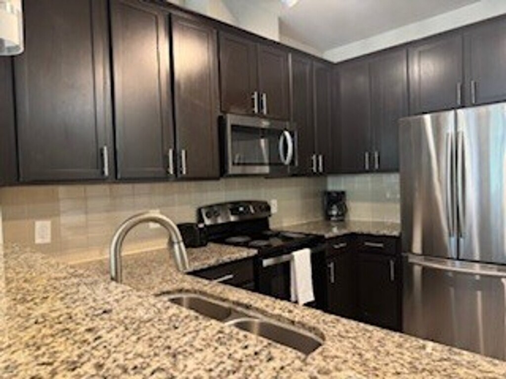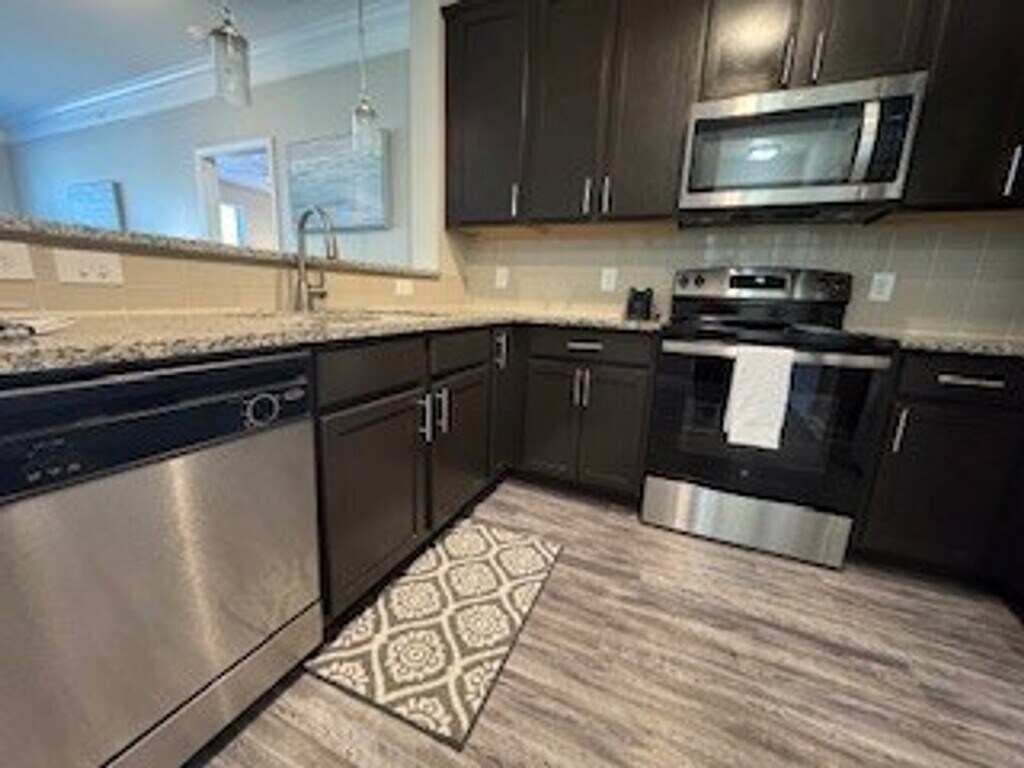Feel at home in this apartment surrounded by parks and trails. Regency at Johns Creek Walk is pet-friendly. In-home features add every convenience with thoughtful style. Streamline each cooking venture with state-of-the-art and easy-to-clean stainless-steel appliances, granite countertops, a dishwasher, and a refrigerator with an ice maker. Luxurious aesthetics await at every turn with plush carpeting, designer plank flooring, spacious 9-foot ceilings with crown molding, and contemporary cabinetry and doors with designer hardware. An in-home washer and dryer, intrusion alarms with optional monitoring, and a walk-in closet help keep you organized and secure, while onsite management, package receiving, and high-speed media capabilities provide peace of mind. Take advantage of the extra time you’re afforded by indulging in the community amenities. Dive into the swimming pool or get in your reps at the fitness center with a weight room. Enjoy the Sunday by grilling at the outdoor BBQ station near the onsite playground, then finish off the day by curling up with a book near the outdoor fireplace. [SI]