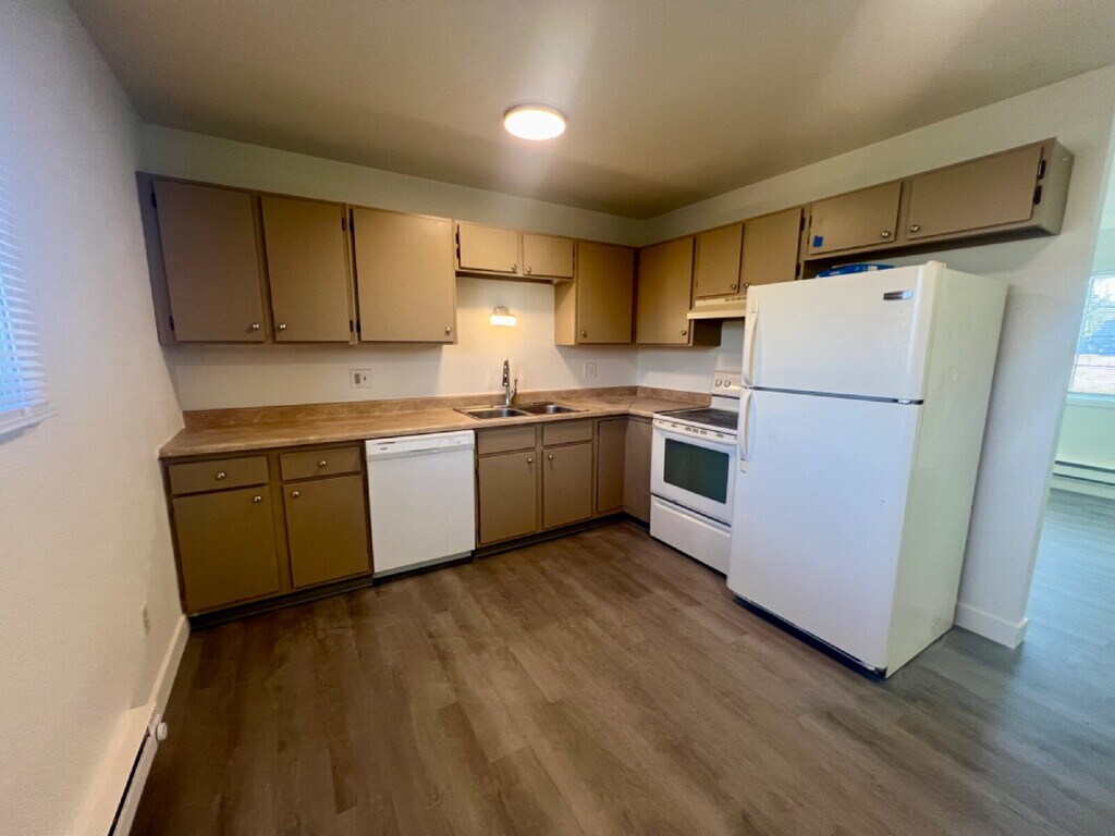 This home features two bedrooms with an additional oversized master bedroom. There is one bathroom, dishwasher and washer/dryer are included. The backyard is fenced and offers several storage sheds available for resident use. The carport in the front will protect your car in the winter. Water is included. Resident pays gas, electric, and sanitation. Maximum of two dogs allowed with additional rent and deposit.