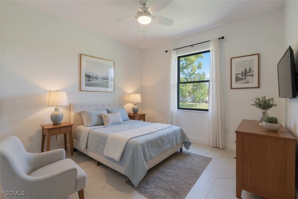Welcome to this stunning new home on a spacious corner lot in NW Cape Coral,offering easy access to Punta Gorda and Fort Myers. With 1,904 sqft,this property features a luxurious master suite with double walk-in closets,plus three additional bedrooms and three full bathrooms—including a private suite ideal for guests or a mother-in-law setup. The open layout boasts a modern kitchen with a quartz island,high-end appliances,upgraded lighting,and elegant tile flooring throughout. Additional highlights include impact windows,a separate laundry room,and a fully finished garage—perfect for families or a great rental investment. First,Last and 1 Sec Dep required! The unit will be delivered with blinds and shelves. Rent to own option available.