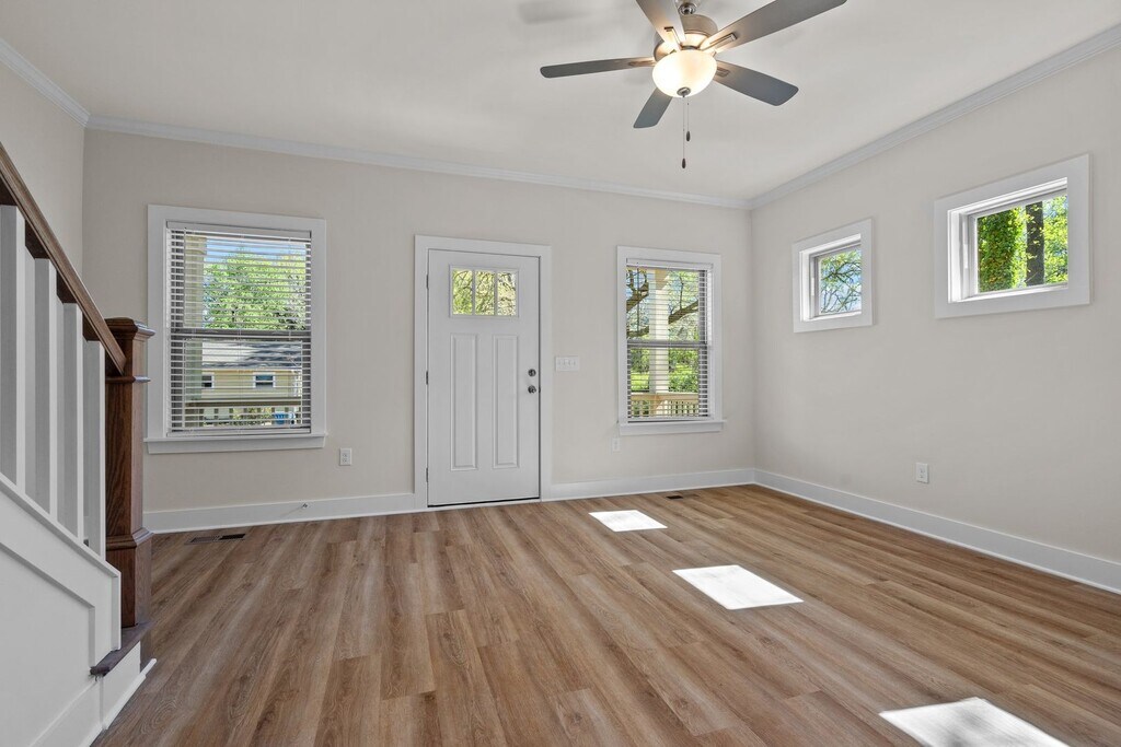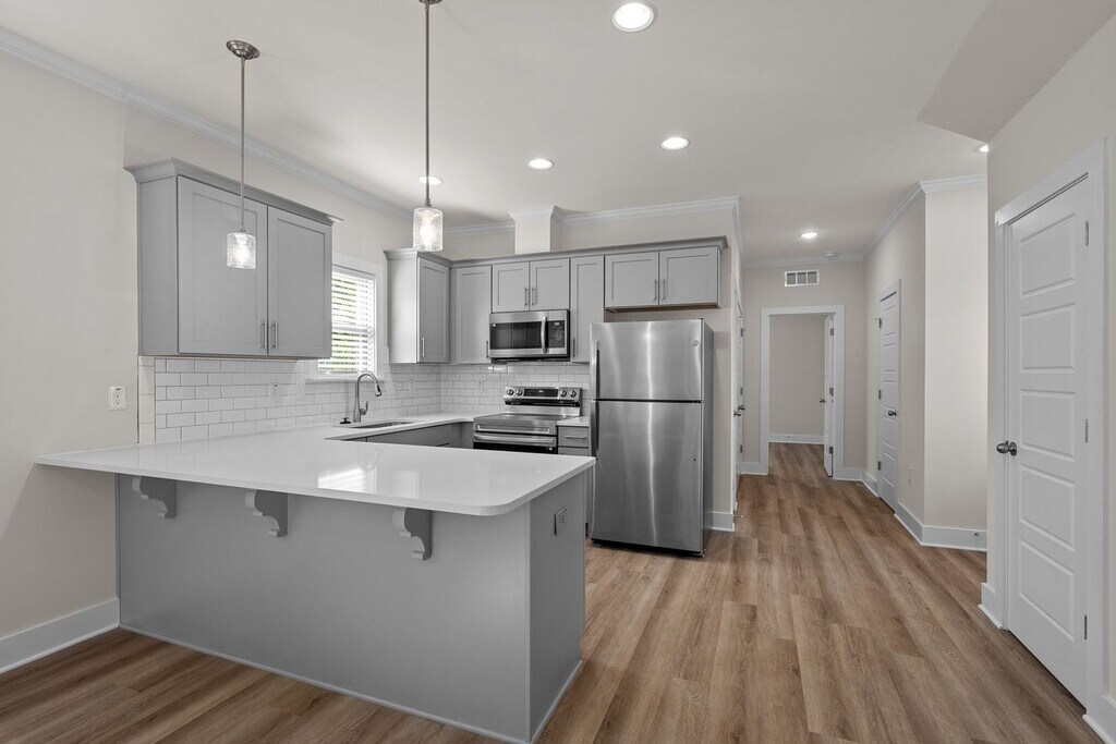 1114-B Violet Street in Durham is offered by Highland Property Management. Contact Will Spence for a scheduled tour! **AVAILABLE EARLY NOVEMBER Welcome to your new home near downtown Durham! This modern, newer construction includes 3 bedrooms, 2 and a half bathrooms, and offers a perfect blend of contemporary amenities and cozy charm. With newer construction, LVP floors, and an open floorplan, this home is perfect for entertaining or relaxing with loved ones. The updated kitchen features soft-close cabinetry, quartz countertops, custom tile backsplash, and stainless-steel appliances. The large living room is ideal for gatherings, while the updated bathrooms boast tiled showers, linen closets, premium hardware, and lighting. The convenience of a laundry room with included washer and dryer adds to the appeal of this pet-friendly property. Don't miss out on the opportunity to make this house your new home!