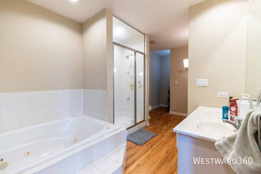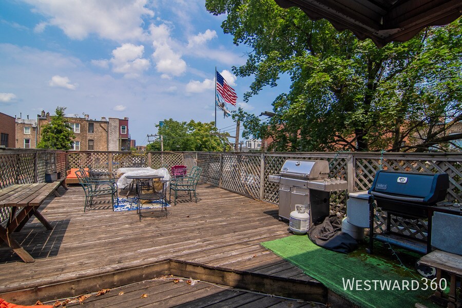 Top floor 3bd/3ba sunny and spacious loft in excellent West Town location with included garage space. First floor is open concept with ample space for multiple living/dining scenarios plus breakfast bar in kitchen. Two bedrooms and two bathrooms plus in unit washer/dryer also one first floor. Second bedroom is best suited as office or guest room. Second floor is large open primary bedroom with en suite bath (separate tub and shower). Enjoy included garage parking plus the building's roof deck right outside your back door that has stunning skyline views. Amazing West Town location that is walking distance to Fulton Market. Nearby restaurants/cafes: D'Amato's, Pizz'amici, Aberdeen Tap, Guinness Brewery, and so much more. Easy 90/94 access. 10 min walk to CTA (Green Line or Blue Line).