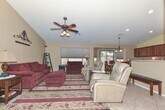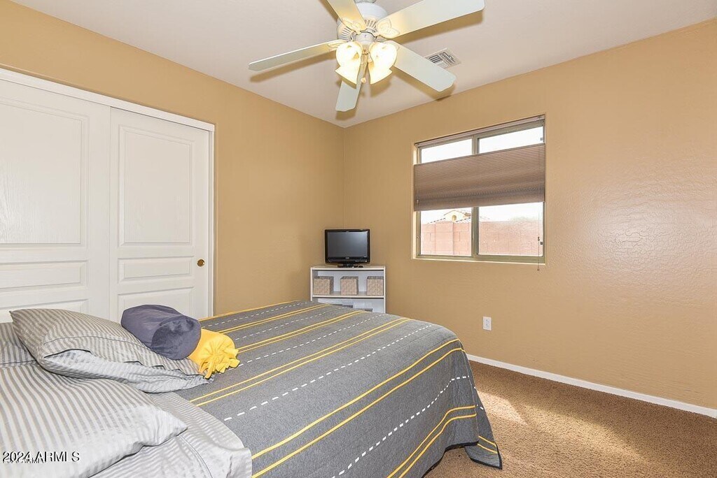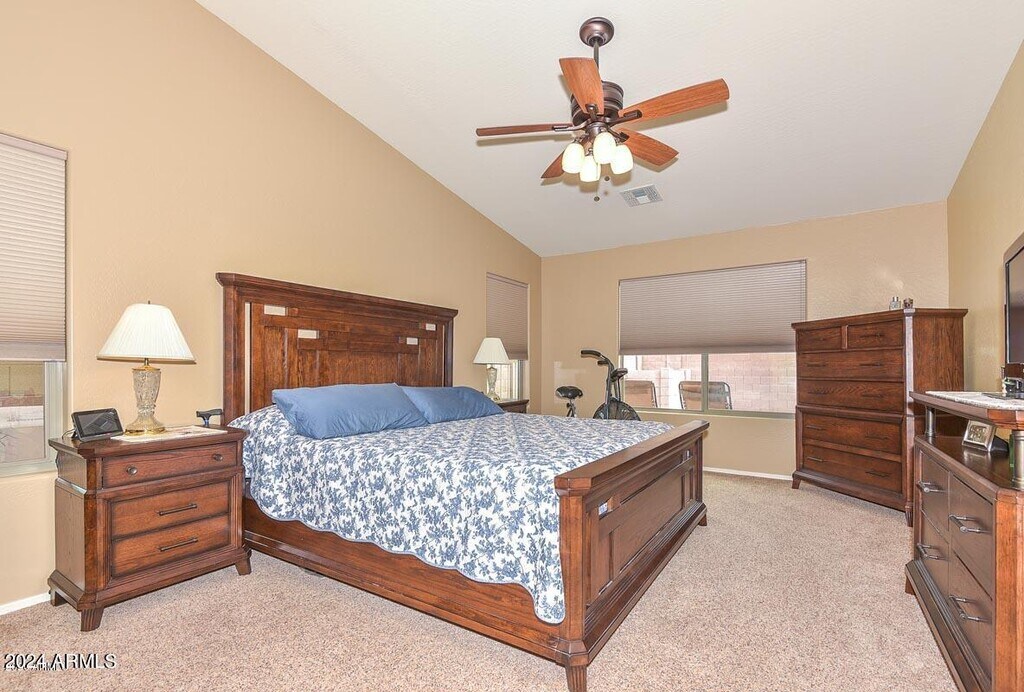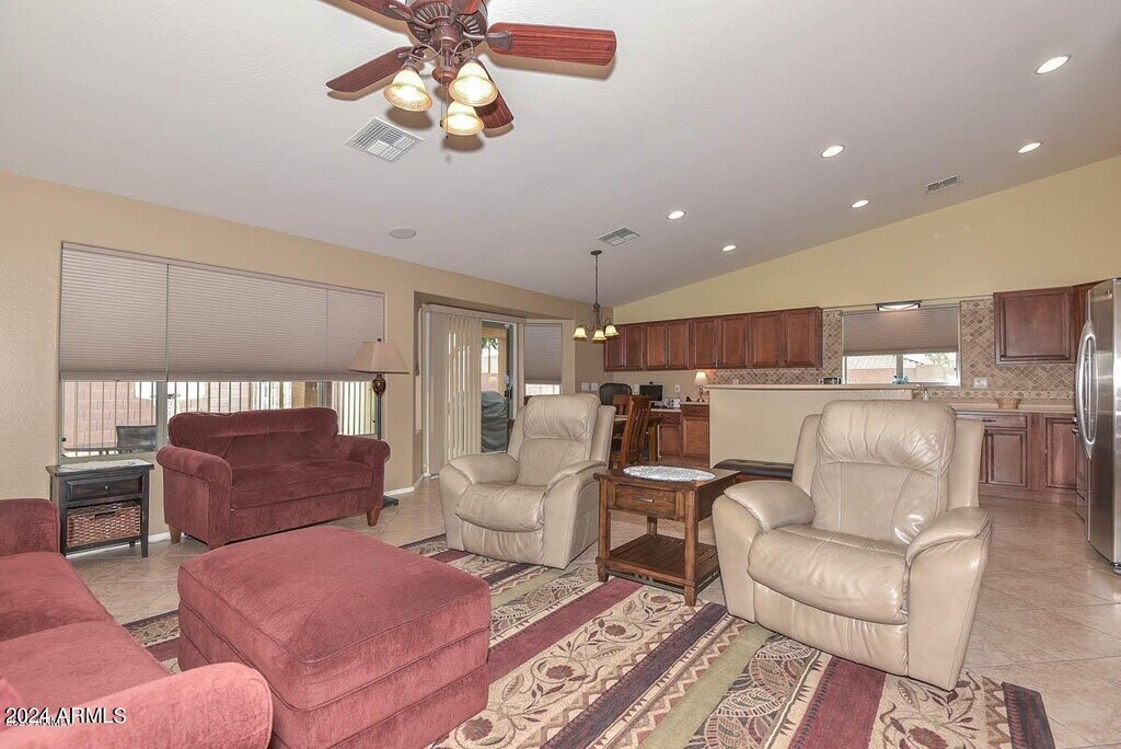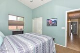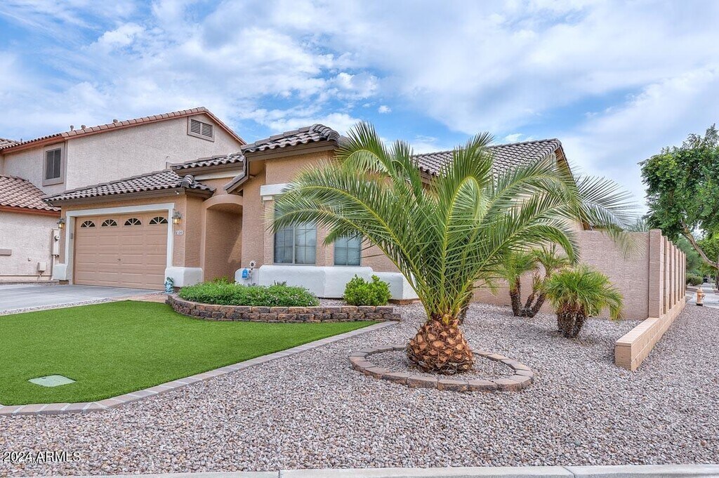 Full solar,pool,and landscape service included! Enjoy your private backyard retreat featuring a fenced pebble-finish pool with in-floor cleaning,lush grass area,storage shed,and an expansive covered patio. Inside,you'll find vaulted ceilings,decorative niches,custom blinds,and neutral tile and carpet throughout. The kitchen offers Corian countertops,a center island,slide-out cabinetry,and stainless steel gas appliances. The open great room includes built-in surround sound for movie nights. The primary suite features dual sinks with quartz vanities,a walk-in closet,separate tub,and shower. Additional highlights include a security system,WiFi thermostat,and new A/C. Synthetic front-yard turf,block accents,and an extended driveway with walkway access to the backyard.