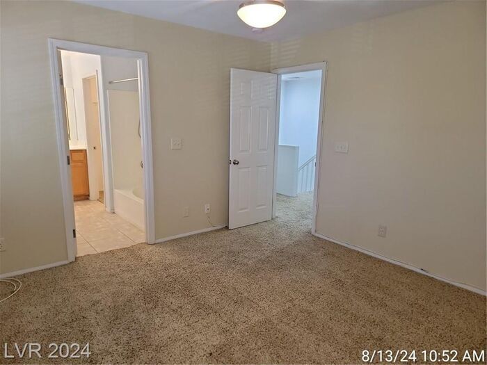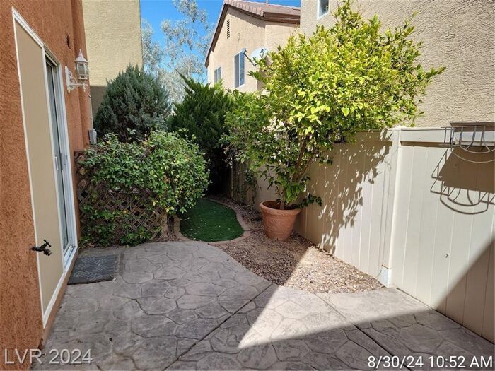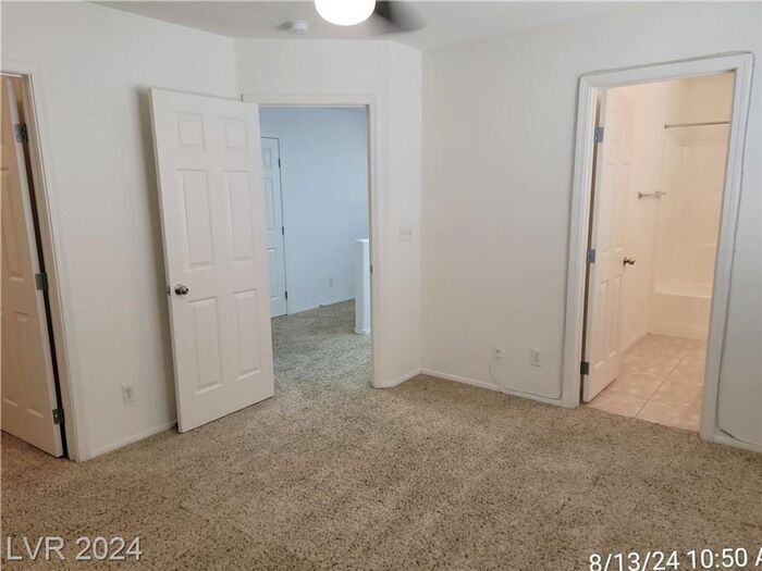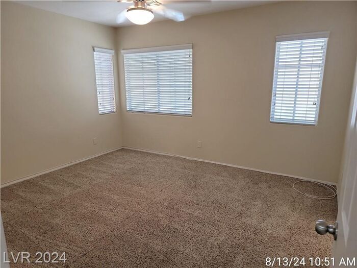 NEW PHOTOS COMING SOON. **JOIN THE WAITLIST NOW (Not Accepting Applications Until the Property is Viewed) Minutes from the Strip and the “M” Casino, this home features a rare dual–primary bedroom layout, each with a walk-in closet and tub/shower combo. The cozy living area offers wood flooring, and the kitchen includes a roomy breakfast nook. A downstairs half bath adds convenience, while ceiling fans throughout keep the home comfortable. The low-maintenance backyard has a small patio and synthetic grass. No pets allowed. Contact us to schedule a showing.