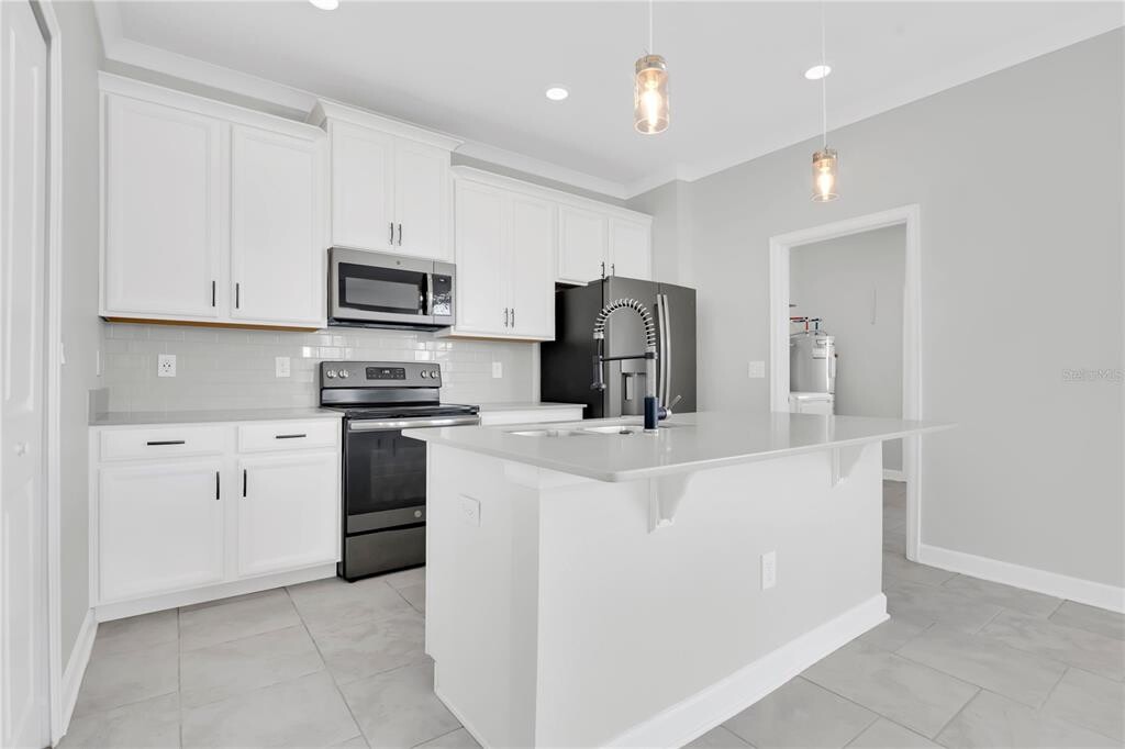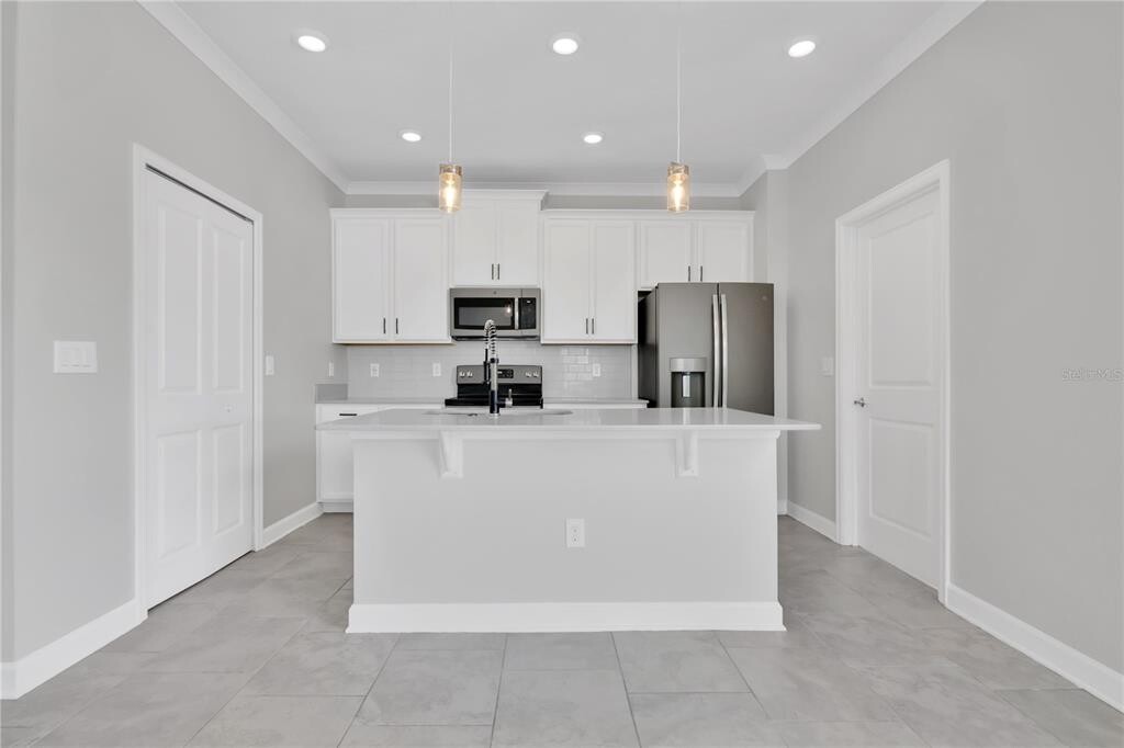 Completely updated end-unit townhome located in the highly sought-after Storey Grove community of Horizon West in Winter Garden. This 3-bedroom,2.5-bath home offers an open-concept layout filled with natural light and stylish upgrades throughout. The kitchen features 42-inch upper cabinets,decorative lighting,crown molding,ceiling fans,and upgraded kitchen and bathroom fixtures. The first floor showcases ceramic tile flooring,while the second floor features luxury vinyl plank—no carpet anywhere in the home. Designer details add a custom feel,including a shiplap accent wall in the downstairs half bath,herringbone tile backsplash in the owner’s bathroom,and a board-and-batten feature wall in the owner’s suite. The spacious private patio includes staggered brick pavers,a vinyl privacy fence,and direct access to the detached two-car garage. Storey Grove residents enjoy a clubhouse,resort-style pool,fitness center,playgrounds,dog parks,and walking trails. Move-in ready and conveniently located near shopping,dining,and major roadways within Horizon West and Winter Garden. MLS# O6370514