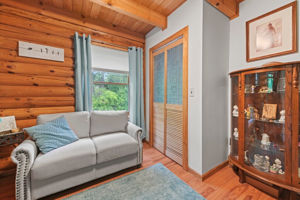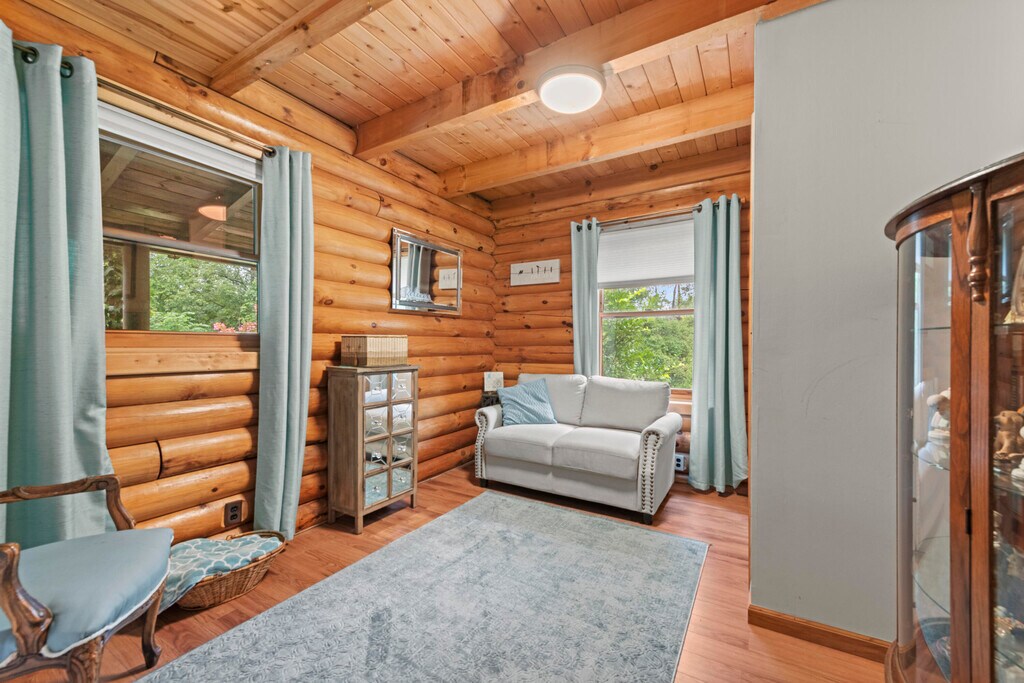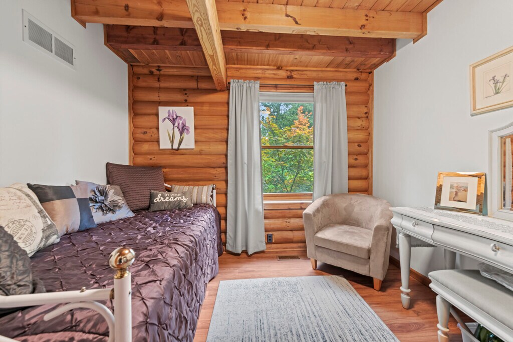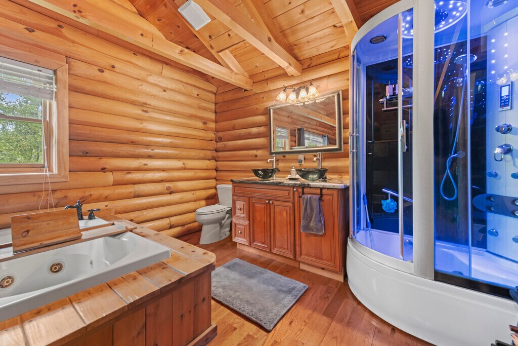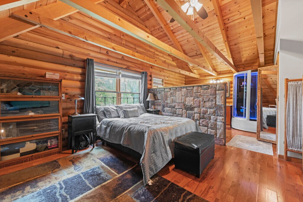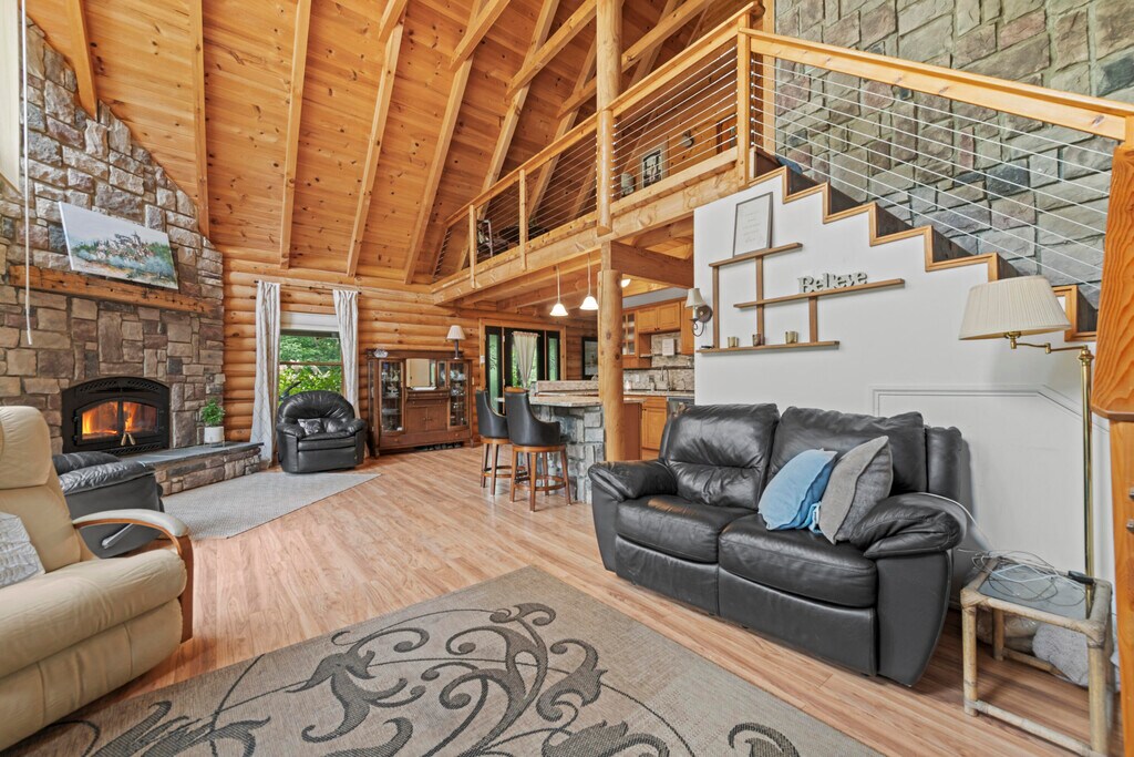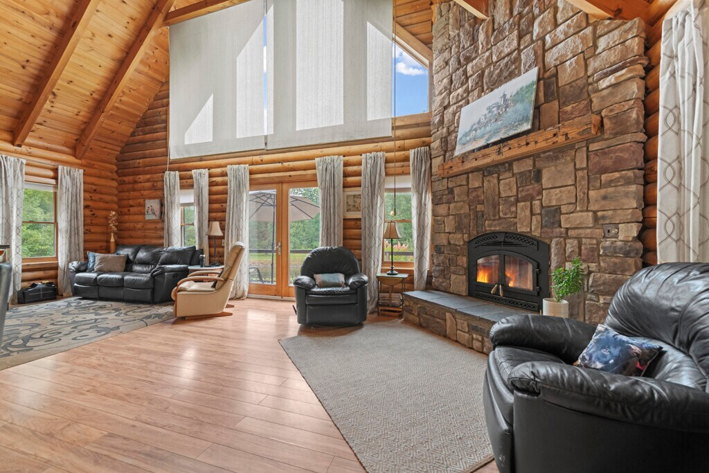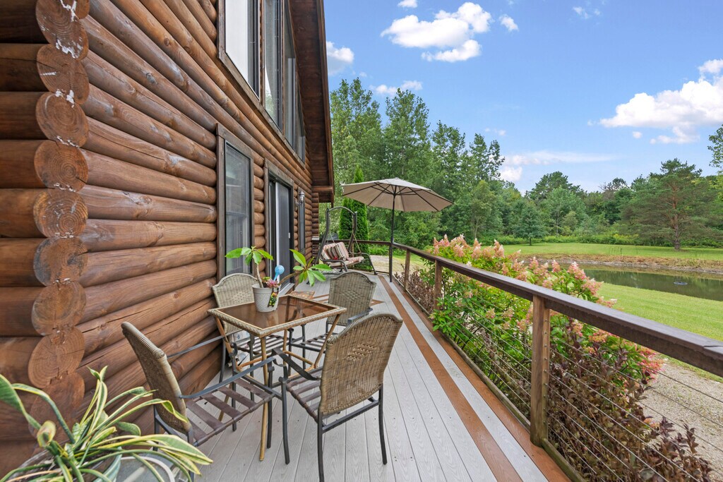 Welcome to your perfect up-north getaway! This charming 3 bed,2 bath log cabin sits on 7 private,wooded acres and has everything you need to relax,entertain,and enjoy nature in style. Property Highlights: Spacious primary bedroom retreat with peaceful views Fully finished basement featuring a second full kitchen,Murphy bed,cozy lounge area,and bar - ideal for guests or in-law living Heated workshop for projects,hobbies,or home business use Your very own private pond - perfect for fishing,kayaking,or just unwinding Wraparound deck to soak in the scenery from every angle Total of 1,875 sq ft of warm,inviting living space with rustic wood finishes throughout.