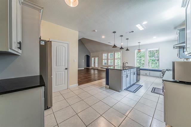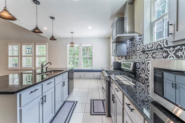Spacious and inviting, this beautifully designed home features soaring ceilings, abundant natural light, and an open-concept layout perfect for everyday living and entertaining. The main living area flows seamlessly into a well-appointed kitchen with a large island, granite countertops, stainless steel appliances, custom cabinetry, and a stylish backsplash. A built-in window bench adds charm to the breakfast area. The primary suite offers a private retreat, while secondary bedrooms are generously sized with ample storage. An upstairs flex space provides the ideal setup for a game room, media room, or home office. Step outside to a large backyard with an extended deck, perfect for relaxing or hosting gatherings. Wood flooring runs throughout the main living areas, and the bathrooms have been updated with modern finishes. Washer, dryer, and kitchen appliances will convey with the home. Conveniently located near shopping, dining, and major highways, offering an easy commute and access to everyday essentials.