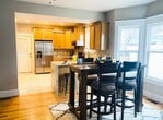 Charming meets modern in this beautifully updated 2-bedroom, 1.5-bath home packed with character. From the original hardwood floors and classic pocket doors to the detailed staircase and vintage hardware, every corner has personality you won’t find in cookie-cutter rentals. The kitchen is a standout: sleek stainless steel appliances, textured granite countertops, stylish tile backsplash, and plenty of cabinet space to keep everything organized. Both bedrooms are bright and inviting with tons of natural light, and the updated bathrooms offer a fresh, clean feel—complete with a tub/shower combo in the full bath. You’ll love the everyday conveniences too: a dedicated laundry room with full-size washer and dryer hookups, central air and heat, and a clean basement perfect for extra storage. Outside, enjoy your morning coffee on the front porch, relax in the fully fenced backyard, and take advantage of a storage shed plus private off-street parking. Pet-friendly and move-in ready—homes like this don’t stay available for long. Schedule your tour and lock it in before it’s gone.