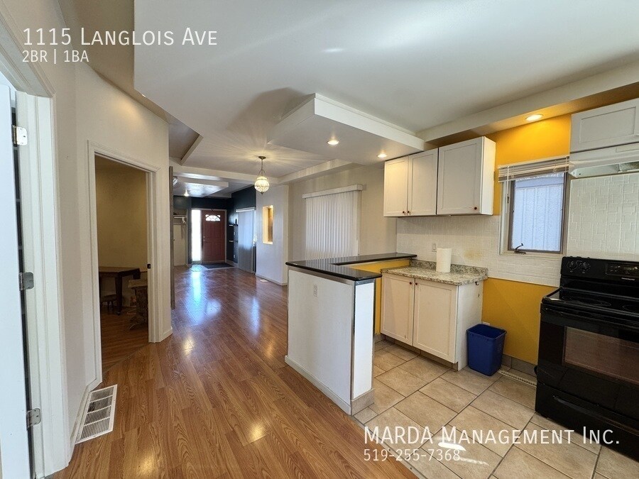 Welcome to 1115 Langlois, a beautiful 2 bedroom, 1 bathroom single-family home located in the desirable Walkerville area. This open concept home offers modern finishes and thoughtful design details throughout. The living space features lighted wall niches, an electric fireplace for added warmth and ambiance, and large windows throughout that provide excellent natural lighting. Recessed lighting adds a clean, modern touch across the home. The kitchen is equipped with a black fridge, stove, and dishwasher, complemented by white cabinetry and attractive countertops, offering both style and functionality. Both bedrooms include well-sized closets, providing ample storage. The bathroom features a tub/shower combo and dual vanities, creating a practical and comfortable layout. The basement offers additional storage space along with a dedicated area for a washer and dryer. Outside, enjoy a partially fenced backyard with a well-sized deck, perfect for outdoor use. Tenants are responsible for hydro, water, gas, lawn care, and snow removal. One-year minimum lease. First and last months rent and a credit check are required. Professionally managed by MARDA Management, offering 24/7 maintenance support with a live agent and easy, convenient rent payment options. Call MARDA MANAGEMENT today at or email to schedule your viewing. Driveway Parking Front Porch Laminate Flooring No Smoking Allowed Pet Friendly