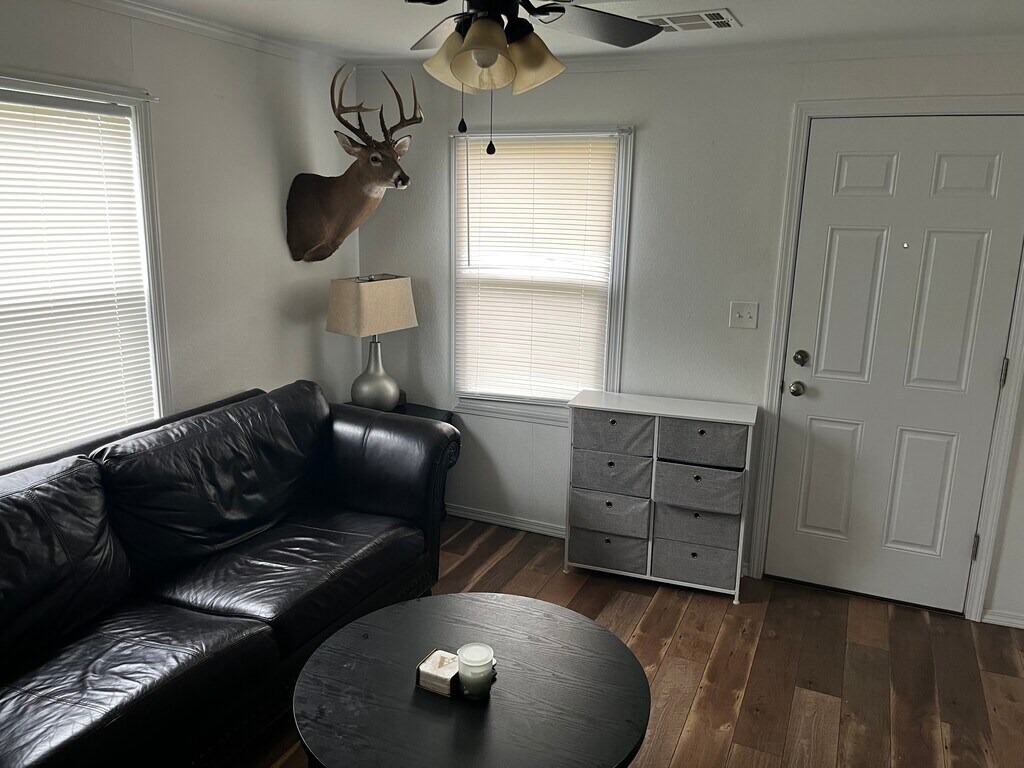 **Available January 1, 2026** Cute and cozy 1 BR, 1 BA, large corner lot with covered and extra parking. Large storage shed on site. Newly remodeled kitchen, new flooring throughout, and ready to call it your home. Refrigerator, stove, dishwasher, built-in microwave, security cameras, laundry room with washer and dryer. Close to downtown, coffee shops, and local stores. NO PETS, NON-SMOKER, NO EXCEPTIONS! Tenants will be responsible for utilities, lawn maintenance, and renters insurance. One year lease. Each adult must complete an application and background. **Showings of home will be scheduled AFTER approved application as property is currently occupied. Please DO NOT disturb current tenant. Please direct all inquires to the contact information listed.**