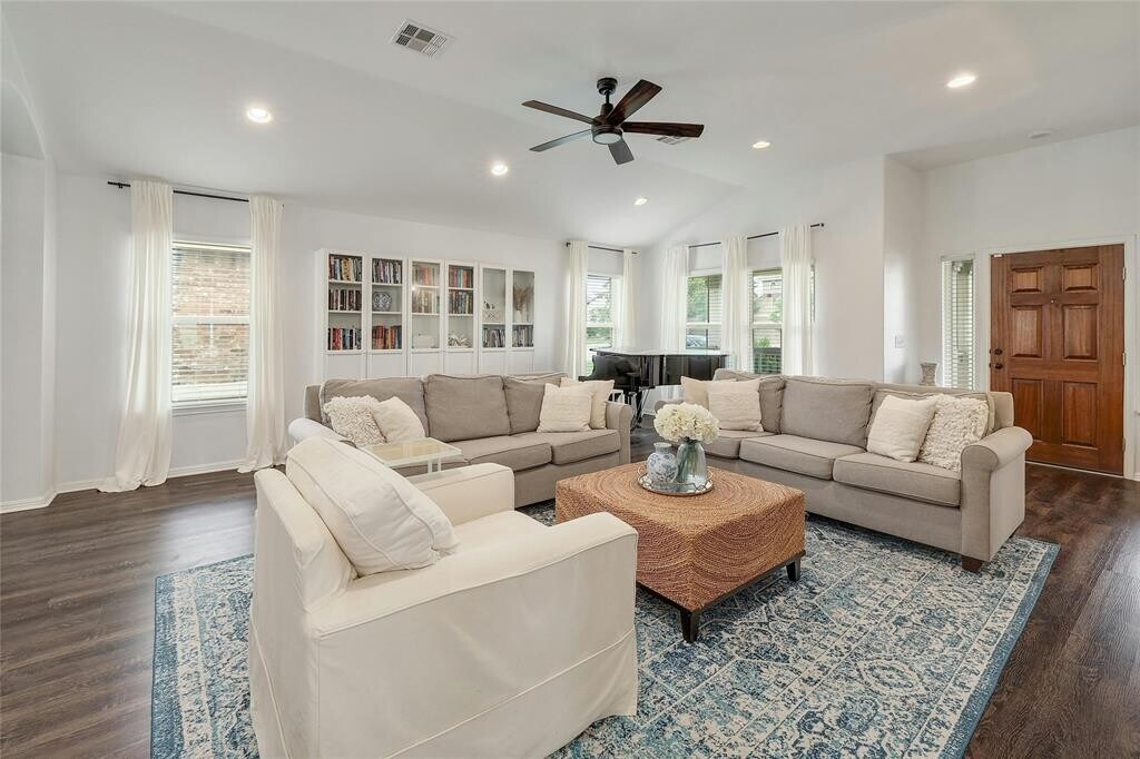 Tucked into a quiet street in the storybook neighborhood of Highland Park, this tranquil home is chock full of thoughtful upgrades: brand new flooring throughout (carpet & luxury vinyl plank, both in designer colors), fresh neutral interior paint, upgraded kitchen cabinetry, modern & tasteful light fixtures, built-in bookshelves, and roof replaced in 2022. All of this plus an open, functional floor plan on one of the LARGEST CORNER LOTS in the neighborhood! The backyard is enormous with abundant potential. Just around the corner from neighborhood parks, less than 5 minutes to prime shopping centers, and only 20 miles to downtown Austin.