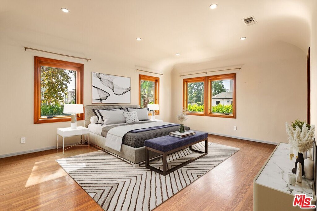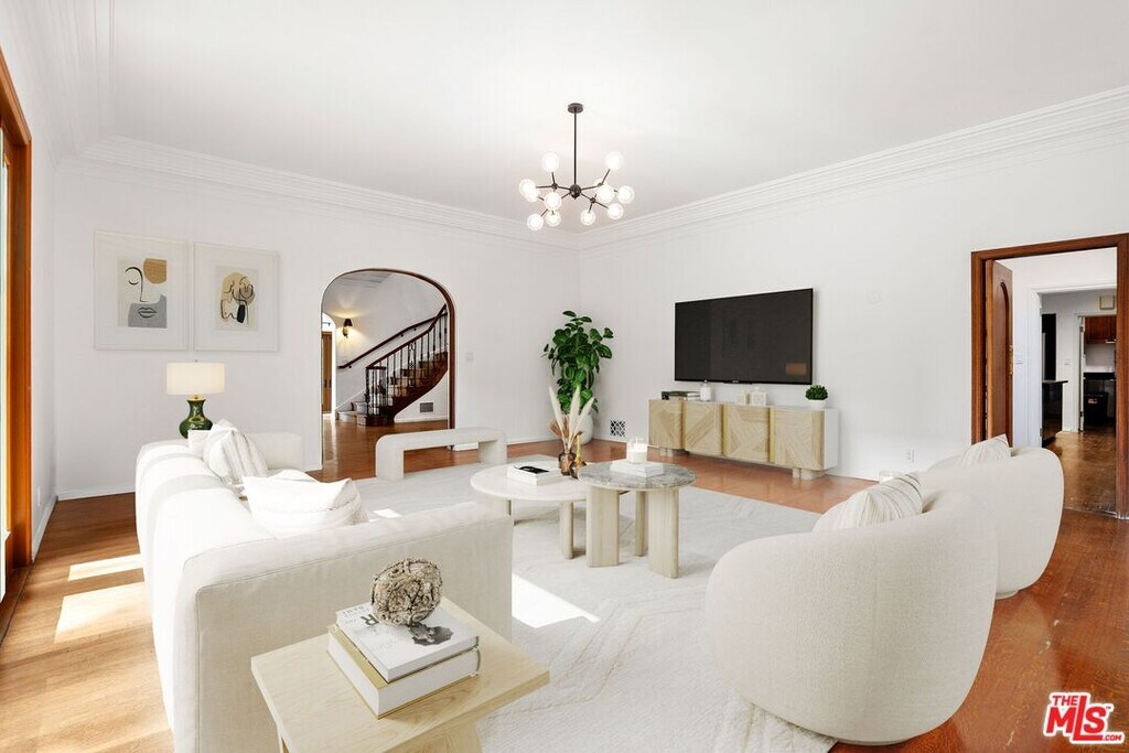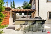 Tucked behind soaring 18-foot hedges, this private Spanish estate seamlessly blends classic 1920s architecture with sophisticated modern updates. Originally built in 1927 by Tony La Maida, the home has been meticulously restored and expanded into a serene compound featuring a 25-meter lap pool and spa, outdoor kitchen, fireplace, shower, koi pond, and multiple patios designed for true indoor-outdoor living. Inside, a dramatic foyer with a sweeping spiral staircase sets the tone for elegant entertaining. The main level includes a grand formal dining room, sun-filled living room with marble fireplace, family room, office, and chef's kitchen with Wolf and Sub-Zero appliances. A guest suite and dual powder rooms complete the first floor. Upstairs, the primary suite offers a marble-clad bath with soaking tub, plus three additional en-suite bedrooms and two balconies overlooking the lush grounds. Additional features include a 520-bottle wine cellar, detached one-bedroom guest house with full bath, and gated parking for six or more cars. Updated systems include 60 solar panels, new Pella windows and doors, copper plumbing, five HVAC zones, Tesla charger, and whole-house water filtration. Moments from the NoHo Arts District, Toluca Lake, and Studio City's best dining and shopping, this historic compound offers rare privacy, character, and craftsmanship in a premier location. MLS# 25613411