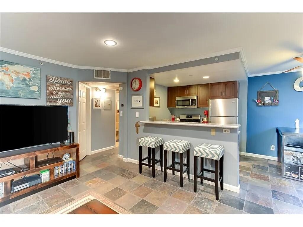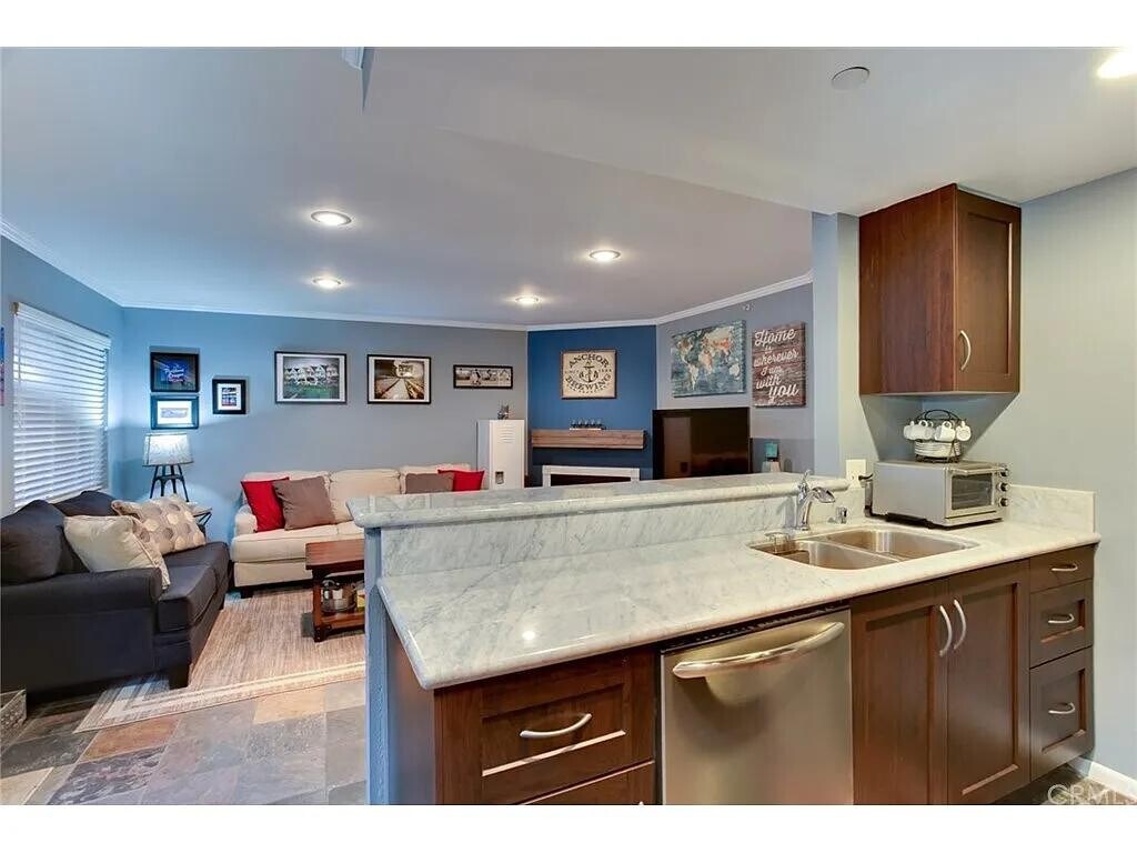 This charming 1-bedroom, 1-bathroom condo is located in the highly sought-after Adams Hill neighborhood and features an open floor plan with a recently updated kitchen and bathroom. Step into a bright and inviting living room complete with a fireplace, recessed lighting, and elegant slate flooring. This charming 1-bedroom, 1-bathroom condo is located in the highly sought-after Adams Hill neighborhood and features an open floor plan with a recently updated kitchen and bathroom. Step into a bright and inviting living room complete with a fireplace, recessed lighting, and elegant slate flooring. The dining area sits conveniently off the kitchen, which showcases beautiful white Carrera marble countertops and a breakfast bar—perfect for quick meals or additional seating when entertaining friends and family. The bathroom has been tastefully upgraded with custom designer fixtures. The home also offers generous closet and storage space throughout. Ideally situated near many local attrac...