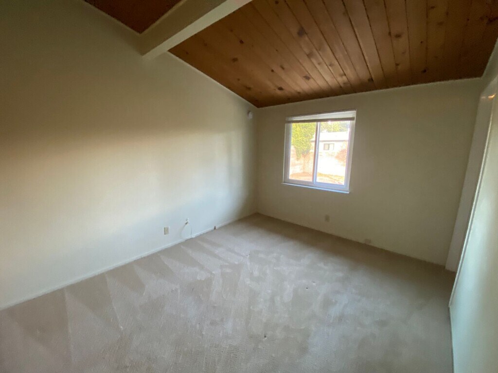This charming three bedroom, one and a half bathroom home is located on a quaint cul-de-sac; the home has a cozy cabin feel with the vaulted wooden ceilings and the stylish brick fireplace in the living room. The large patio and turf yard make the perfect area to host BBQs or have a coffee in the morning sun. With both a driveway and a garage, there is plenty of parking space. The attached garage can also be utilized as an additional storage space. The laundry room, equipped with hook ups, is located just off of the kitchen. Owner pays for sewer. Tenants responsible for all other utilities. One-year lease. No pets. California Civil Code § 1710.2: A death occurred on the premises within the last 3 years.