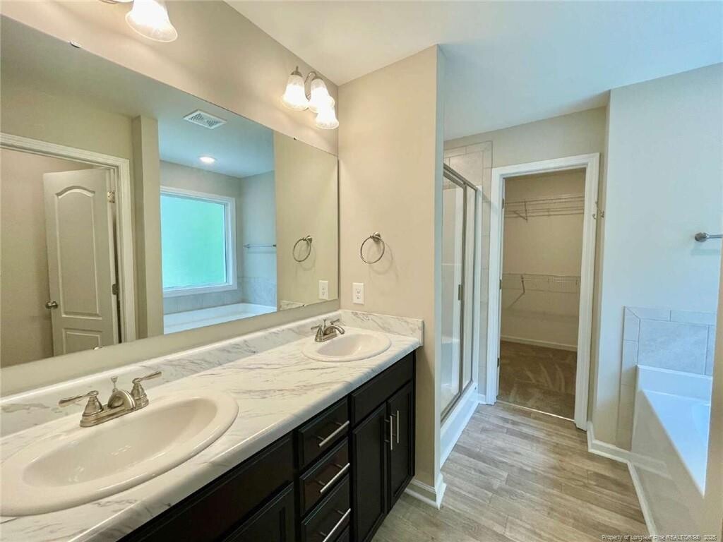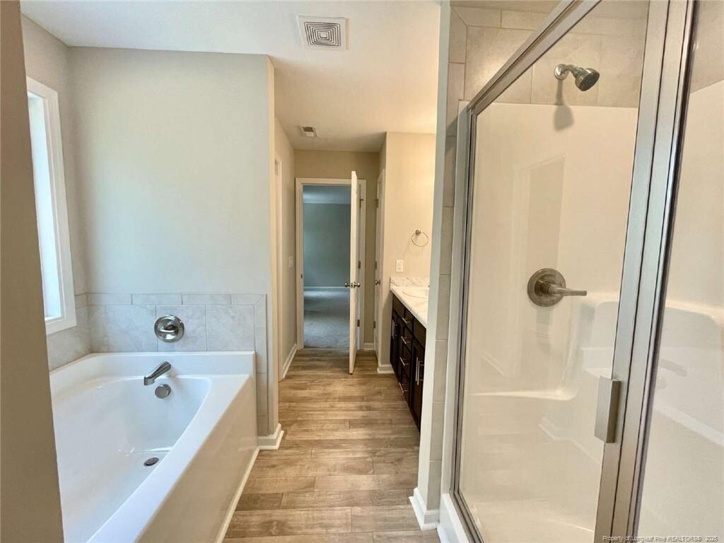 Haymount, NEW CONSTRUCTION, 3 bedroom 2.5 bath, open floor plan with, 9 ft ceilings, LVP flooring on 1st floor, white subway tile & moon granite in kitchen, stainless range, microwave, & dishwasher, owner suite has walk in closet, dual sinks, garden tub & separate shower, double garage, walk to Haymount shops, Theater & restaurants.