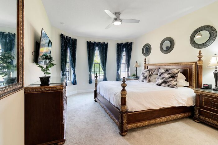 This beautiful 4 bedroom/3.5 bathroom home will not be available for long. Located in the Ruby Lake community in the Dr. Phillip’s area. The gourmet kitchen has all stainless steel appliances, built in gas cook top and a double oven/microwave combo. The kitchen looks over the Family room with sliding glass doors that leads to the covered lanai with built-in grill and mini-refrigerator, the perfect outdoor kitchen. There is a flex space off the kitchen that can be used for an office, play area or bedroom. Off the main living room is the first floor master suite, one of two master suites. The ensuite bathroom has separate vanities providing plenty of space, large walk-in closets, glass walk-in shower and soaker tub. The second master suite and ensuite has double bowl sink, shower and tub combo with a large walk-in closet. Spacious laundry room with washer/dryer hook-ups and stainless steel sink with granite counter tops. Upstairs is the an additional bedroom with a full bath. The loft area would be great for a second living room or media room. The community amenities feature a beautiful community pool, tennis court and pier with firework viewing on the Lake Ruby. As part of Keller Williams' dedication to resident satisfaction, you'll have access to our exclusive Resident Benefits Package (RBP). This includes perks such as HVAC air filter delivery, renters insurance, credit-building opportunities, $1M Identity Protection, and utility concierge service, ensuring a stress-free move-in experience. Located near great restaurants and shopping. Short commute to I4. Call or text our Showing Hotline today at to request a showing appointment! Applications are available on our website @ Contact us to schedule a showing.