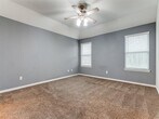 Welcome to your ideal home! This exquisite 4-bedroom, 2-bathroom house is situated in a peaceful neighborhood adorned with mature trees and enhanced with brand-new stone landscaping. Step inside to an open-concept kitchen and family room, designed for seamless entertaining. The kitchen is a chef's delight, featuring elegant granite countertops, upgraded cabinet hardware, and modern light fixtures. The primary bedroom offers a spacious walk-in closet, while all bedrooms are equipped with upgraded ceiling fans for maximum comfort. Smart home features include a SMART thermostat and a state-of-the-art security system. The office and dining room come with dimmable lights, creating the perfect atmosphere. Plus, an elementary school is just a short walk away. Additional highlights include mini-blinds throughout the home.