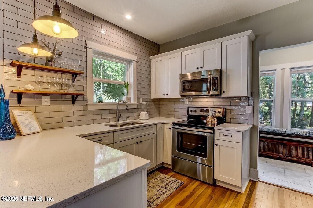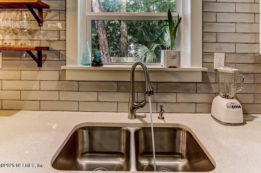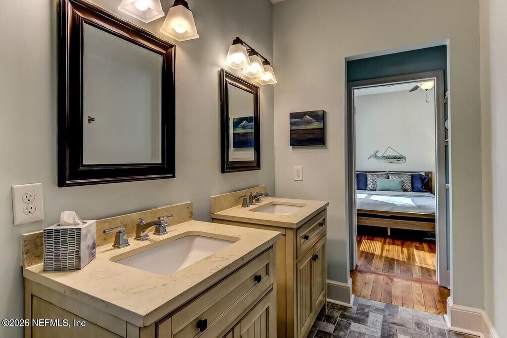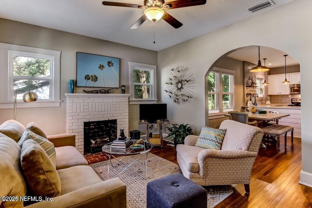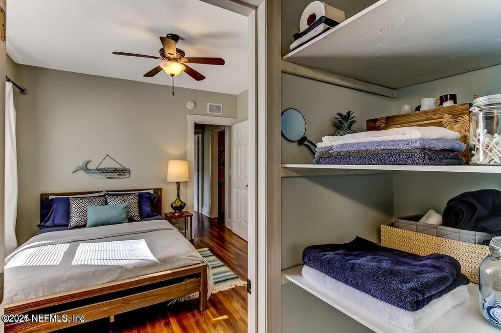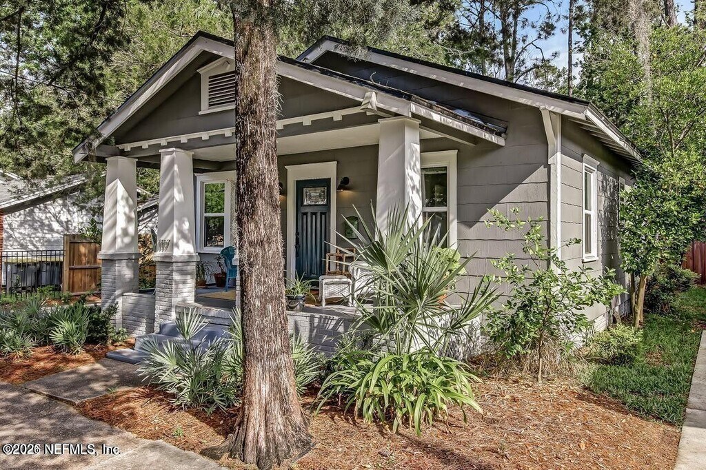 AVAILABLE APRIL 1ST. Walk to the square from this beautifully updated 1928 San Marco bungalow. Fully renovated around 2017 with upgraded plumbing,electrical,HVAC,roof,kitchen,baths,and windows. The open floor plan features a modern kitchen with stainless appliances,quartz countertops,and soft-close cabinetry. There's a mudroom and separate laundry room at the back. The primary suite includes dual vanities,a large walk-in shower,and a spacious walk-in closet. Detached garage and low-maintenance yard,no grass or irrigation needed. Located directly on Belmonte Park and currently set up as a fully furnished vacation rental. Move-in ready and full of charm! MLS# 2133262