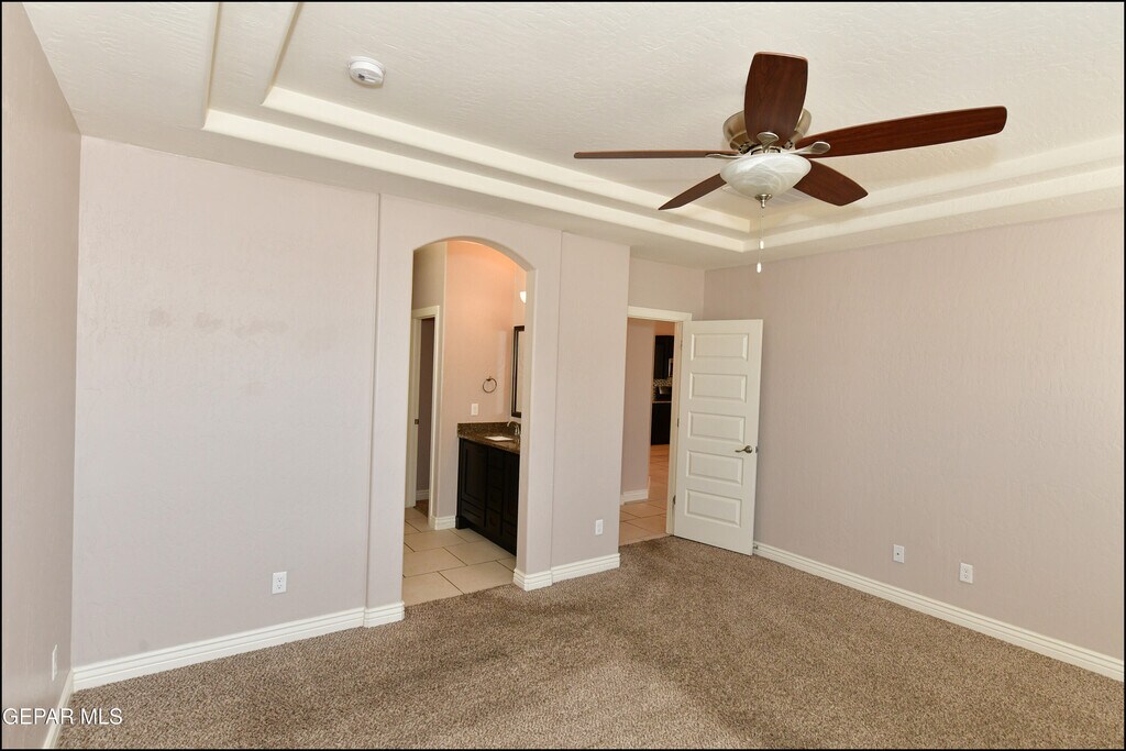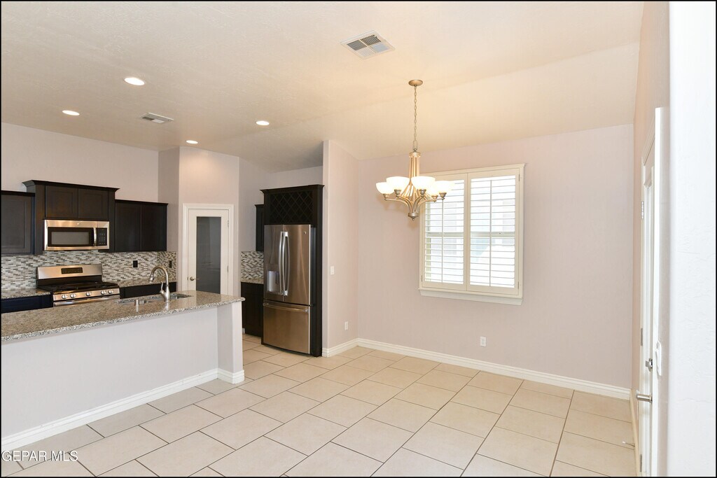 Just minutes from El Paso's top outdoor playgrounds & dining hotspots,this bright 3BD 2BTH home showcases clean lines & intentional textures throughout. Enter into a sunlit foyer that opens to sweeping tile floors and an open-plan kitchen. Granite counters wrap around a peninsula island,creating distinct prep and serving zones framed by a custom glass-and-stone backsplash The primary suite features a dual-basin vanity and a spa-style bath with a freestanding garden tub and glass-enclosed shower. Two additional bedrooms enjoy plush carpeting and easy hallway access to a second full bath. A covered patio extends living outdoors,ideal for weekend barbecues. With John Drugan Elementary,Americas High School,parks,shopping,and hospitals all just a short drive away—and instantaneous access to Loop 375 and I-10—this is homebase for every chapter of your life. Deposit-Free Renting service to Obligo qualified renters,fees may apply.