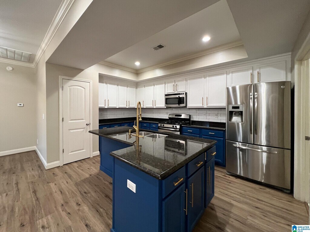 OAK MOUNTAIN SCHOOLS! This end unit, cul de sac lot is in the perfect location! Walking distance to the shops and restaurants of Mt. Laurel, you will fall in love with this community! A 3 bedroom and 2.5 bath with so much space! The gorgeous kitchen with Stunning painted cabinets, stainless appliances and granite counter tops opens up to the living room with ventless fireplace and there is a private suite off the back of the home. Upstairs you'll find two additional bedrooms with a huge den, perfect for a place to watch the game or a playroom! Don't miss the peaceful and private covered porch and fenced in yard! MLS ID 21450025