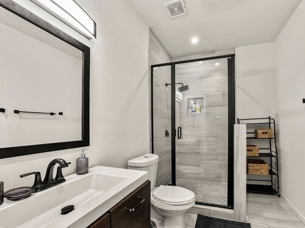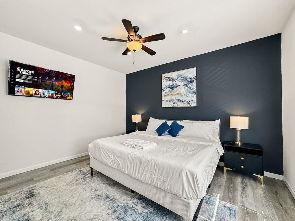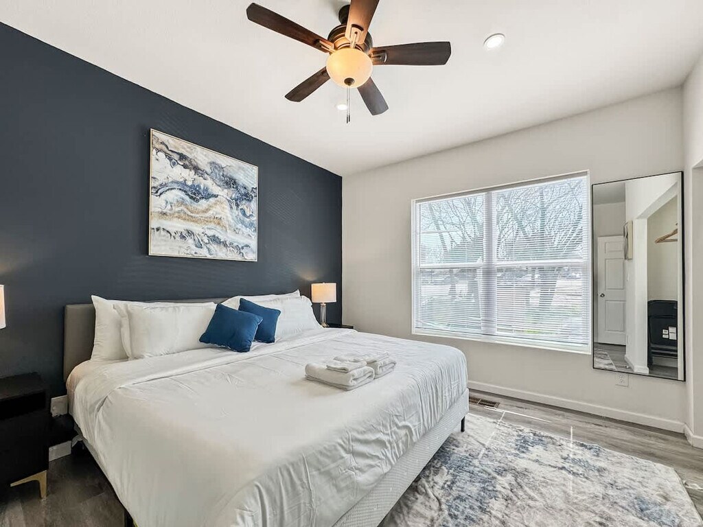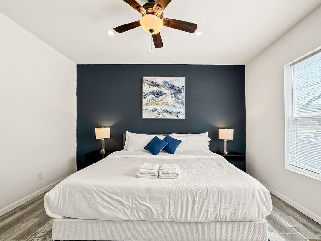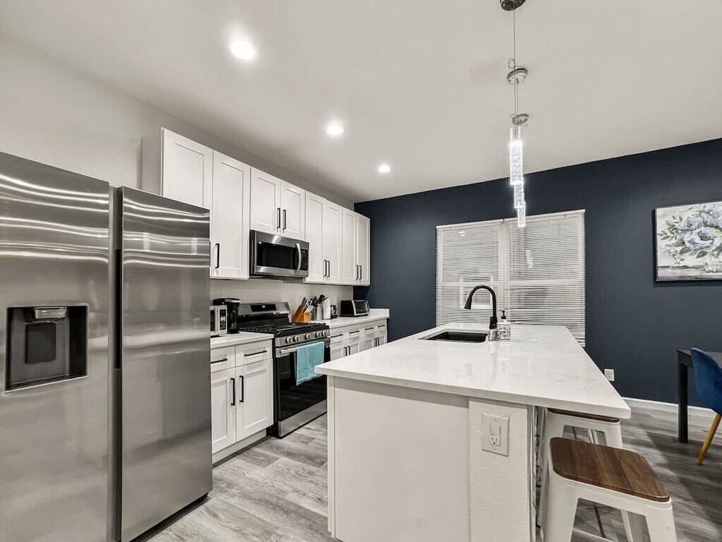 Your search ends here—this is the ideal spot for your stay in Dallas. Impeccably clean and roomy, this stylish 3-bedroom, 2-bathroom apartment offers plush King and Queen beds for a restful sleep. Enjoy the game room for entertainment and make unforgettable memories, day or night. The open-concept living and dining space is tastefully furnished with contemporary decor and ample lighting. Expansive glass windows flood the space with natural light, complemented by warm wooden floors for a cozy ambiance. Each bedroom provides a peaceful escape with charming nighttime views. The fully equipped kitchen ensures effortless meal preparation with modern appliances and all necessary cookware. Experience the best of Dallas from this inviting apartment. Conveniently located, it offers easy access to local attractions and amenities, making it perfect for group getaways with family or friends. Your health, safety, and comfort are our top priorities, with strict cleaning protocols followed after every stay. Guest verification is required before your stay, which may involve submitting a government-issued photo ID and completing verification through our portal. All guests must sign a rental agreement outlining the terms of their stay. Hallway surveillance cameras are in place, and a Minut device is installed in the unit to monitor noise levels. [SI]