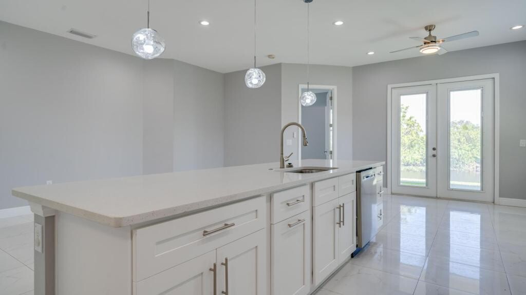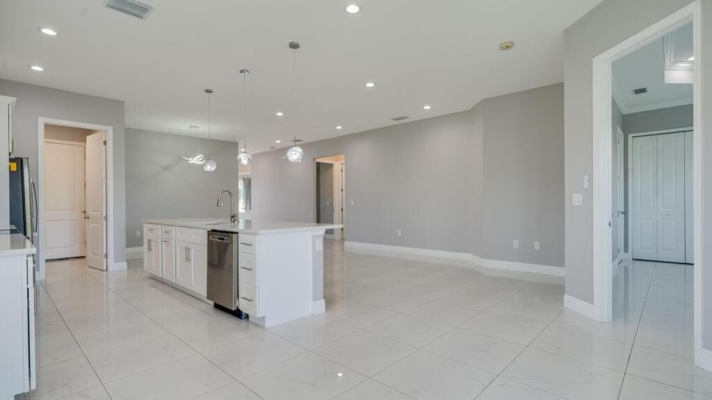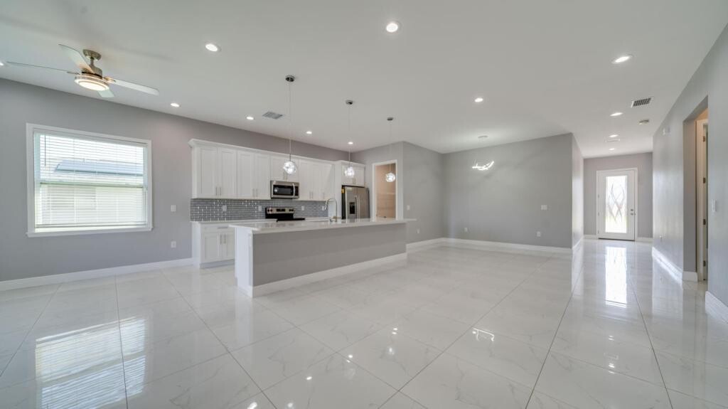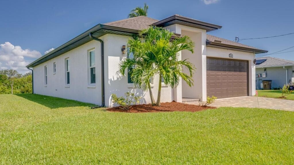 STUNNING MODERN 4 BEDROOM CANAL FRONT HOME IN THE HEART OF CAPE CORAL! You are going to love this spacious modern/contemporary home! NO Flood Zone on a freshwater canal to enjoy plenty of fishing on those beautiful Florida evenings. LIKE NEW HOME, Paver driveway, walkways and brand new stainless steel appliances. Be the second family to love this home as their own! This floor plan showcases 4 bedrooms, 2 baths, with a spacious living room for those family get-togethers. Open concept with dream kitchen that comes with a touch of glass! Glass Mosaic subway backsplash, stainless steel appliances, and top level granite countertops, torn right from the a pages of a magazine. The master bedroom and bath include a spacious shower and separate vanities with comfort in mind; making this is instant show stopper. However we didn't forget the guest bath either with the same attention to detail given throughout the entire home. Not to mention with your 2 car garage and extended length for full size vehicles and left with plenty of storage space as well. Welcome Home!