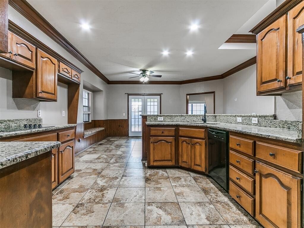 This spacious Edmond home offers a versatile layout with 5 true bedrooms,3 full bathrooms,and multiple living and dining areas. The main level includes two living rooms—both with fireplaces—two dining spaces,a large kitchen with granite countertops,bar seating,and updated LED recessed lighting. You'll also find the primary suite on the first floor,complete with a walk-in closet,jetted tub,and double vanities. Two additional bedrooms and a full hall bath are also located downstairs. Upstairs features two more bedrooms,a full bathroom with a shower,and a generous walk-in storage closet. Other highlights include 2" blinds throughout,updated fixtures and hardware,and plenty of built-in storage. Outside,enjoy a large covered patio and fully fenced yard with space for entertaining,play,or storage. Property is owned by licensed California real estate agents.