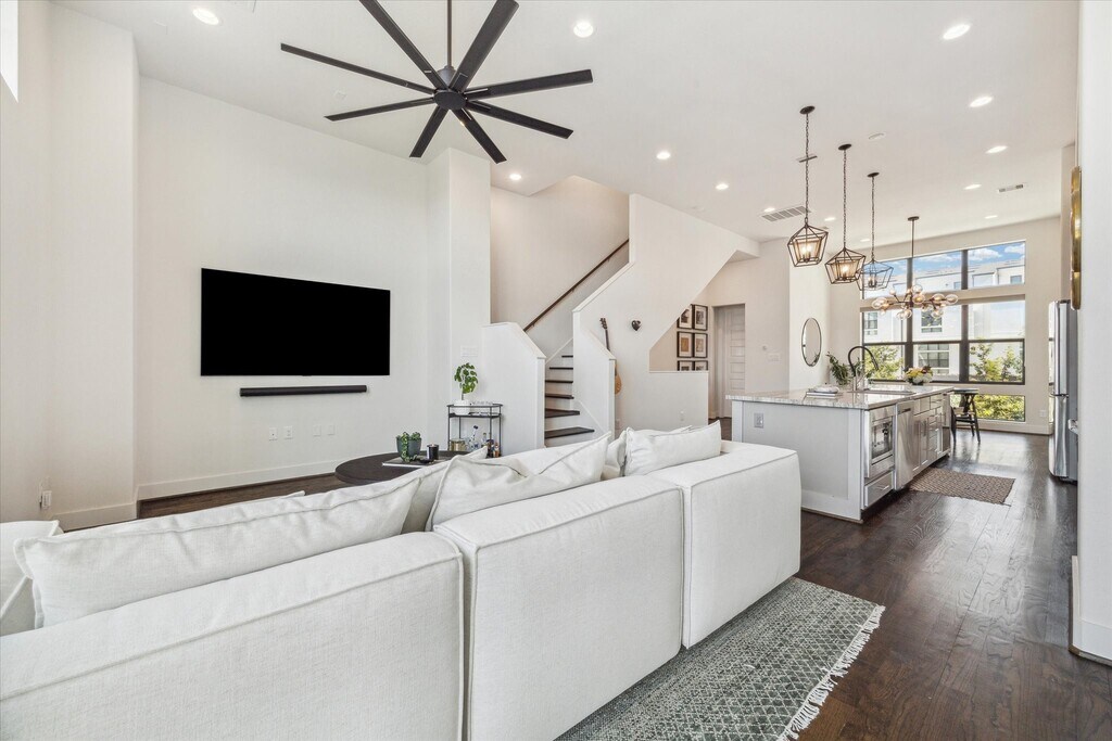 Discover luxury and modern convenience in EaDo’s premier gated community,District East. With only one shared wall,this 3-bedroom townhouse offers stunning Houston skyline views from the rooftop deck and boasts numerous upgrades,including EV charging in the 2-car garage,security film on first-floor doors and windows,Google thermostats,a Vivint security system,and electronic shades on the main floor. The open-concept living space features 12-ft ceilings,large picture windows,concrete and hardwood floors,a marble kitchen island with seating,and stainless appliances,including a built-in wine fridge and gas cooktop. The third-level primary suite offers a luxury bathroom with two sinks,a soaking tub,a glass shower,and an impressive walk-in closet. Located steps from top Houston attractions—restaurants,Columbia Tap Bike Trail,Daiken Park,Toyota Center,and more—this home also offers easy METRO Rail access to downtown,the museum district,the medical center,and the zoo. MLS# 11054969