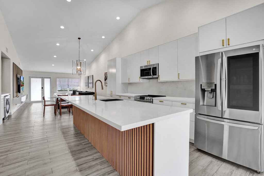 Welcome to one of the most impressive residences ever available for lease in the highly desirable community of Boca Chase. This furnished (or unfurnished) annual rental offers a bright and spacious open-concept layout with a beautiful island kitchen, designed for both style and everyday comfort in upscale west Boca Raton.The home is completely renovated and sits on a rare, tree-lined corner lot with a large, fully fenced backyard and a custom designer pool featuring a sundeck, the perfect blend of privacy, relaxation, and entertaining space. Inside, soaring cathedral ceilings, recessed lighting, and elegant finishes create an airy, inviting feel. The living areas flow seamlessly, enhanced by wood-plank ceramic tile flooring and thoughtful upgrades throughout.