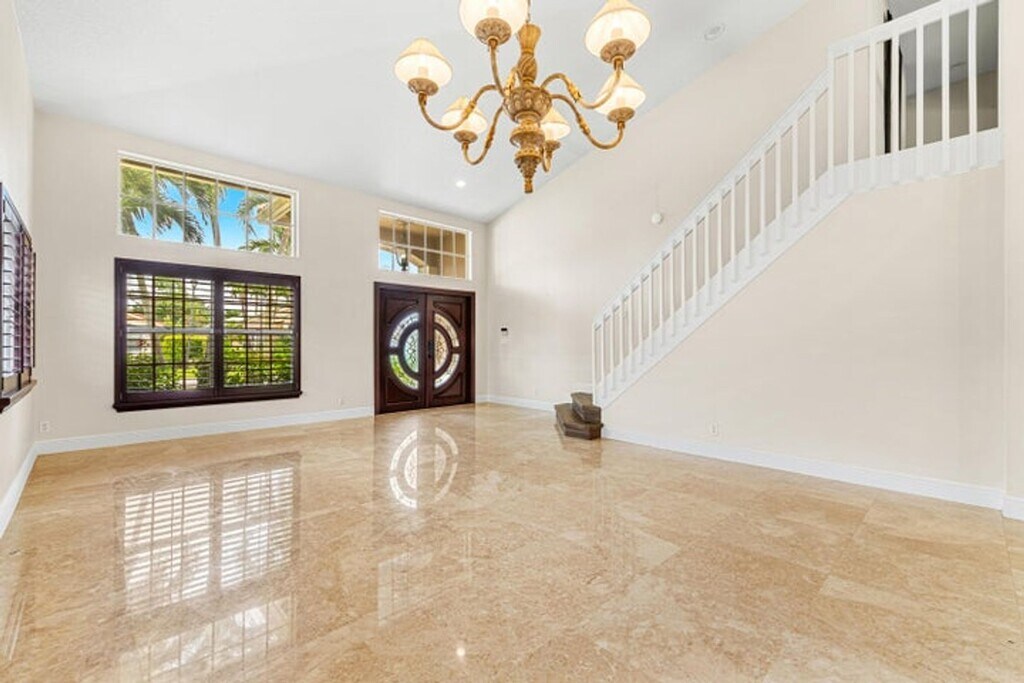 Courtesy of United Realty Group, Inc. Welcome to the Grand Isles community in Wellington--a highly sought-after neighborhood offering the perfect blend of luxury, convenience, and top-rated schools. This beautifully upgraded, home is your gateway to an exceptional lifestyle. Key Features: Size & Layout: Spacious home with 4 bedrooms, 2 1/2 baths. Master Suite: Enjoy a large master bedroom suite with a huge walk in closet, and luxurious master bathroom with a soaking tub. Kitchen: Modern kitchen with granite countertops, ample storage/cabinetry, and high-end finishes. Living Areas: Tile flooring in the downstairs living area, cathedral ceilings, and an open floor plan. Extras: Accordion hurricane shutters, and large covered backyard patio. Guest Quarters: Convenient downstairs bedroom with a full bath ideal for guests or as private office. Parking: 3-car garage for ample storage and convenience. Community & Location: Amenities: Enjoy a variety of resort-style amenities within the well-maintained Grand Isles community. Schools: Located near top-rated Wellington schools, just a few blocks away. Convenience: Close to Wellington Mall, medical facilities, parks, equestrian activities, restaurants, and major roads like the Florida Turnpike. Only a 20-minute drive to the beach! Accessibility: Minutes from I-95, Downtown West Palm Beach, Boynton Beach, and three international airports. This home offers a perfect mix of elegance, functionality, and location. Don't miss the chance to make this exceptional property your own!