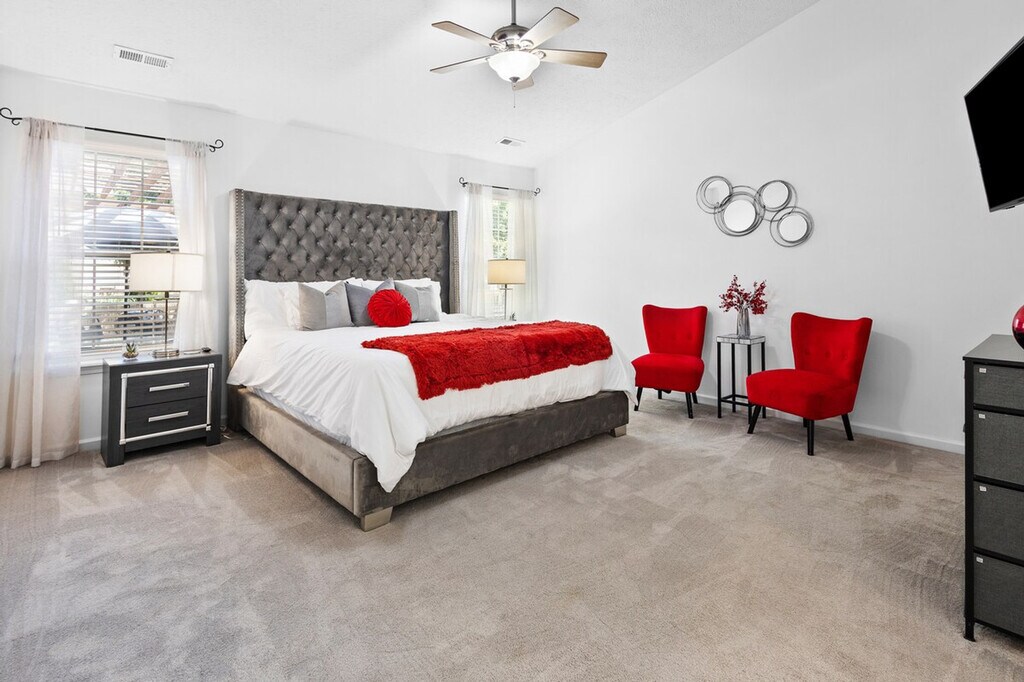 This beautifully updated 2,064 SF ranch-style home is located in the highly desired city of Fishers, Indiana. This home has 4 bedrooms and 2 full bathrooms. The master bedroom has a king-size bed, the second and third bedrooms have queen-size beds, and the upstairs has another king-size bed. The home also has space for 1 air mattress on-site, making a total of 5 beds. The kitchen features stainless steel appliances and plenty of cookware for an enjoyable meal prep experience. This single-family home comes with an attached 2-car garage, driveway, and street parking. It also features a fully fenced backyard, making it perfect for families. The home is children-friendly, offering a pack & play sleeper, stroller, highchair, and booster seat for convenient traveling and dining experiences. The home provides premium amenities, including over 10 cooking spices and 3 types of cooking oils for a delicious meal experience. Parking is available with an attached 2-car garage and additional street parking. Fishers, Indiana, is a highly desired city known for its family-friendly atmosphere and vibrant community. The neighborhood offers easy access to local attractions and amenities, making it an ideal location for both relaxation and exploration. The property includes entertainment options such as a 1Up Arcade, air hockey table, board games, and playing cards. Check-in requires ID submission, and failure to do so will result in no refunds and no access to the property. Fees may vary for long-term stays. The home is equipped with 150 Mbps internet speed, Wi-Fi throughout the entire home, and an Ethernet hard line available, ensuring a reliable connection for remote work. It also features 5 LCD televisions with access to streaming services like Hulu, Disney, ESPN, Netflix, and Prime Video (your login required).