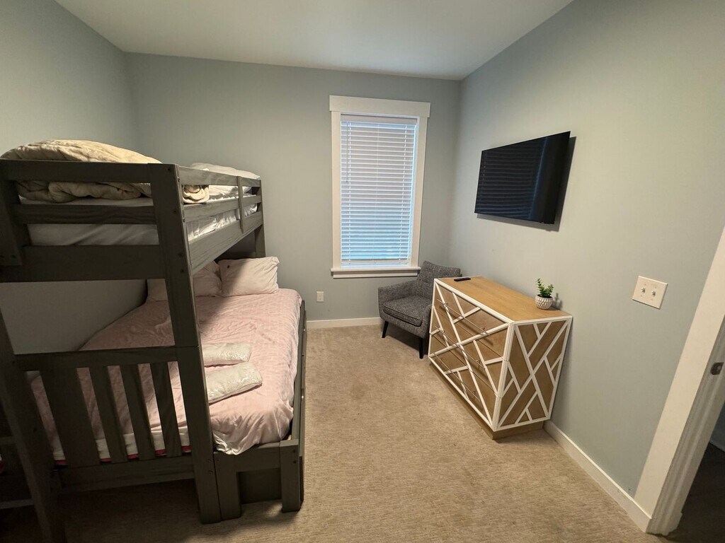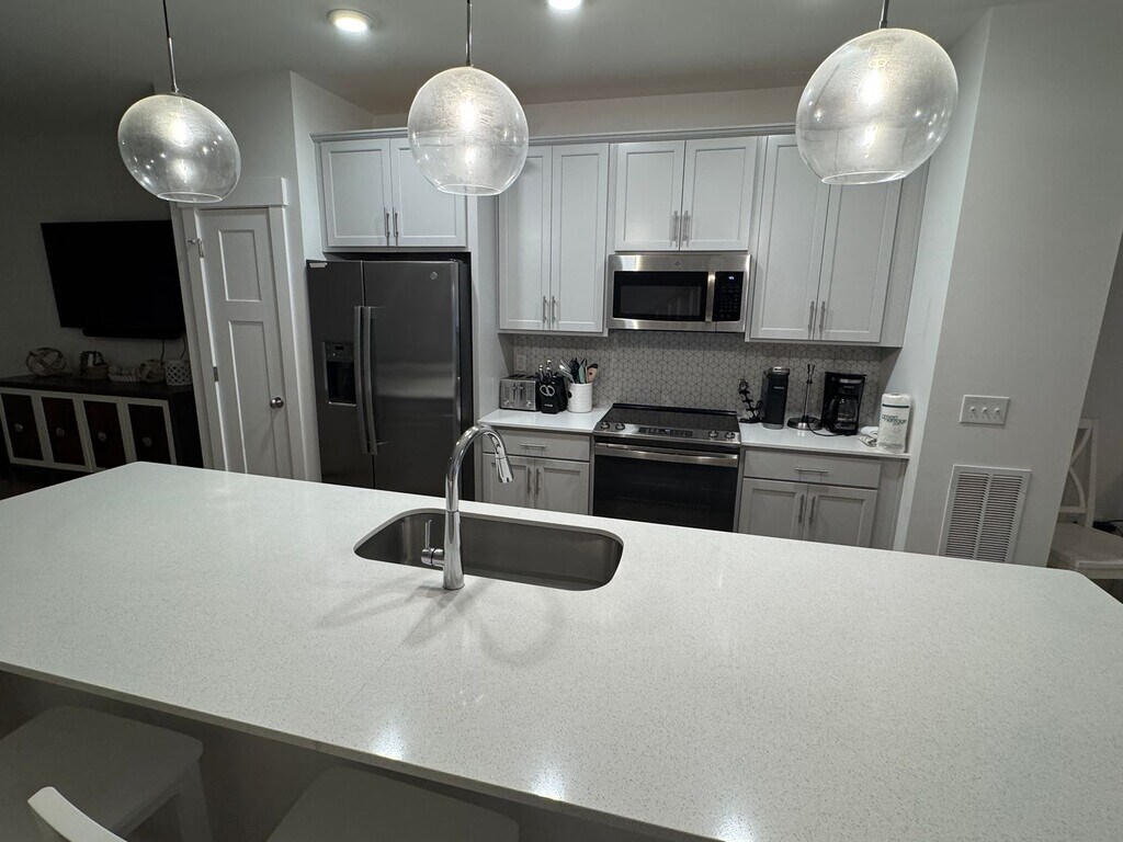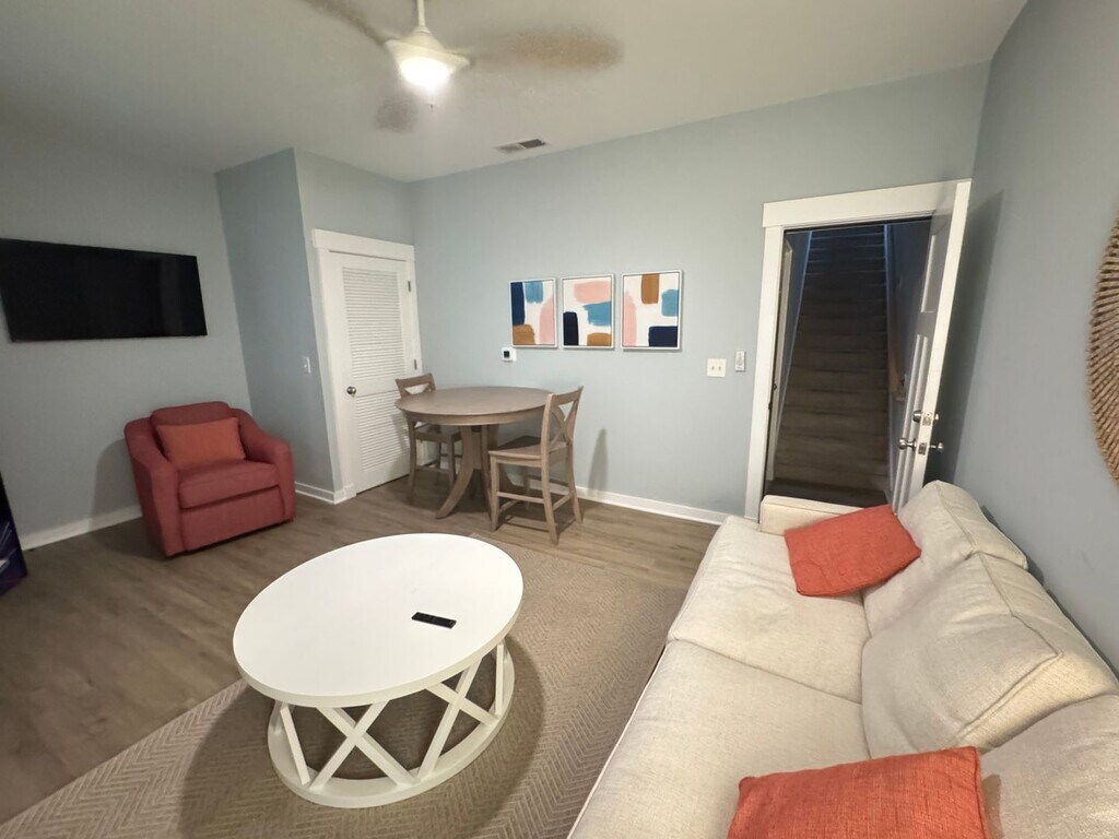 Discover a luxurious 3-bedroom, 3-bath townhouse spread across multiple levels, nestled in the vibrant heart of the Outer Banks in Kill Devil Hills. This elegantly designed property features a spacious layout encompassing four floors. The lower level boasts a recreational room that opens onto a charming backyard patio, perfect for relaxation. The highlight of the condo is its state-of-the-art kitchen, equipped with top-tier appliances, seamlessly flowing into a cozy living room. The second floor is dedicated to comfort, hosting two well-appointed bedrooms, each with its own private bathroom, ensuring privacy and convenience. The crowning jewel is the top floor's private master suite, complete with a full bath, offering a serene retreat. Each unit in this exclusive development includes a sizeable garage with interior access, adding to the convenience. The outdoor space is equally impressive, featuring multi-level decks and patio areas, ideal for enjoying the picturesque surroundings. Residents are mere steps away from the beach and sound, with the added benefit of being within walking distance to the iconic Wright Brothers Memorial. The resort-style amenities elevate the living experience, including a community clubhouse, a modern exercise room, a refreshing pool, a splash park with a lazy river, and a community pier, all contributing to a lifestyle of luxury and leisure.