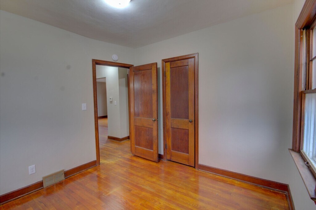 You'll absolutely love this 3 bedroom, 1.5 bath home. The large back yard opens up to Garfield Park right across the street, and just 1 block from Garfield Elementary School. This home has been updated with fresh paint in most rooms. The living room and main level bedrooms are complete with a beautiful hardwood floor. Upstairs is a large, loft style bedroom with a half bath. The basement provides tons of additional storage space. Detached 1 car garage. Central A/C. 1 pet max with additional deposit + monthly pet fee.