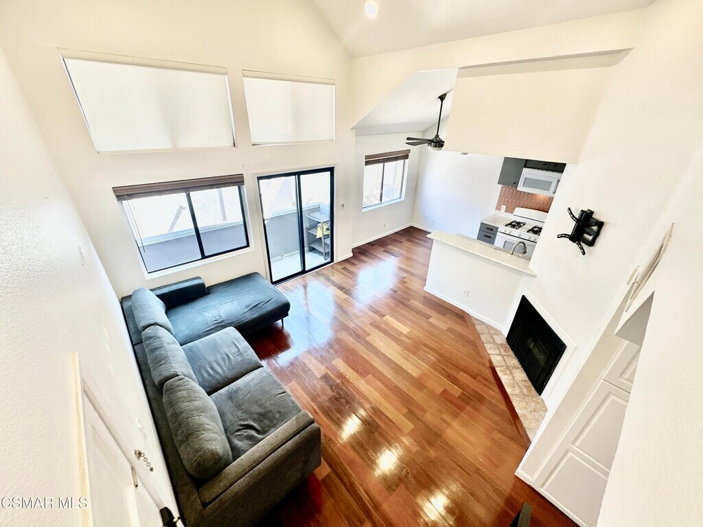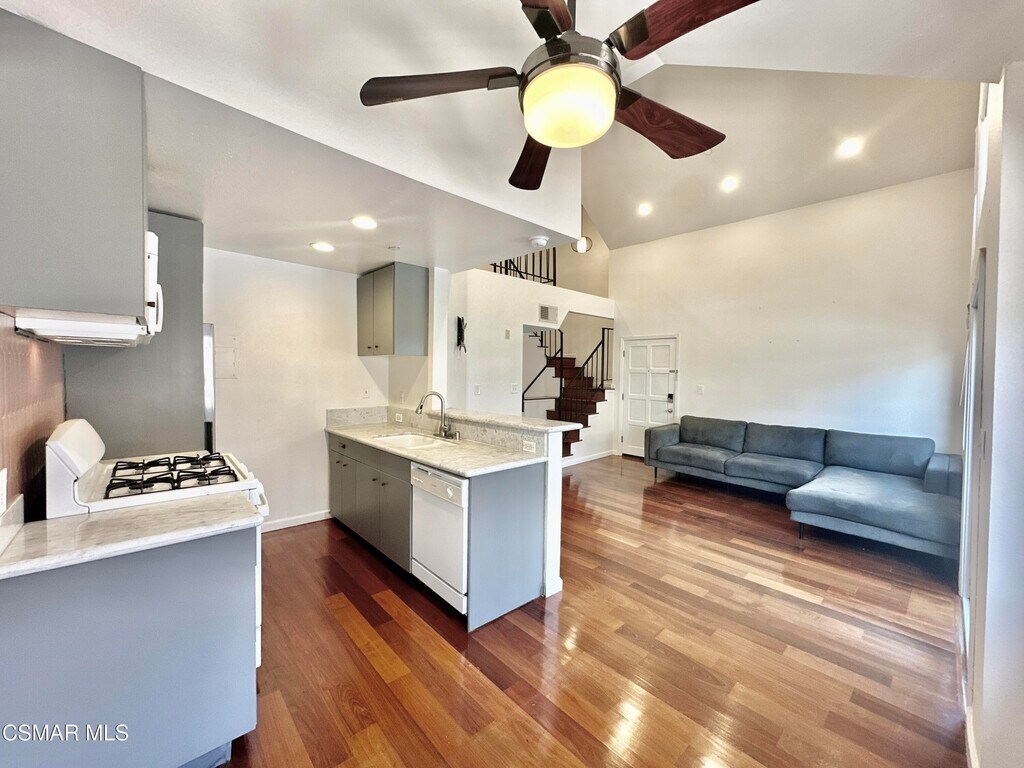 Welcome to 1118 E Palmer Ave, #205 in Adams Hill/Glendale, a haven of contemporary elegance, privacy and Boho chic charm. 1 bedroom, 1 bathroom, 2 level apartment with loft is nestled in a quiet residential neighborhood within Glendale's highly sought-after Adams Hill area. Soaring vaulted ceilings with gorgeous Brazilian hardwood floors that create a stylish and versatile atmosphere. The upstairs loft provides an ideal space for work-at-home, exercise or a quiet reading nook. The efficient kitchen features white marble countertops, updated cabinets, modern appliances including dishwasher. A sliding glass door opens to a small balcony off the main living area perfect for your plants to enjoy the SoCal sunshine. Bathroom has a tub/shower, large vanity/sink and crisp white subway tile. Central A/C and heat, in-unit washer/dryer combo unit, as well as a common area laundry room in the building, 2 shared gas BBQs are available as well. Rent incl. 2 assigned garage parking spaces with storage locker. Controlled-access building. Less than 2 miles from the Americana at Brand and Glendale Galleria. Wide variety of dining, shopping and services all nearby. 2 charming neighborhood parks are just down the street, along with KAFN Coffee, delis, kabob and pastry shops all within the neighborhood enclave of Adams Hill. Explore Highland Park, Atwater Village, Silver Lake, Echo Park and Griffith Park, all just minutes away and just 2.5 miles from Occidental College. Commute effortlessly with easy access to Eastside freeways and DTLA. This quiet residence offers a unique blend of privacy, convenience and security.