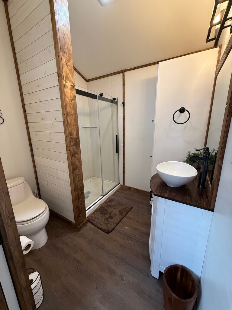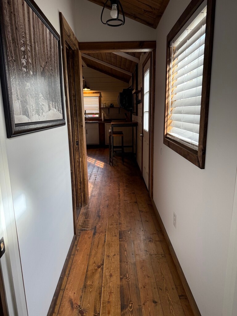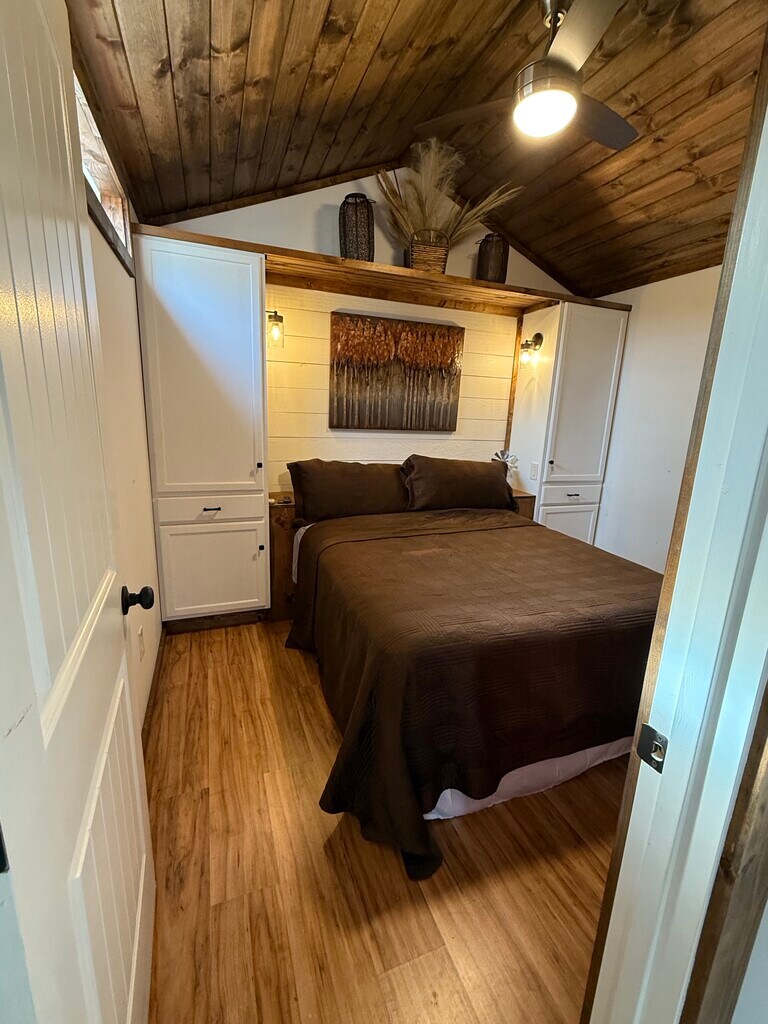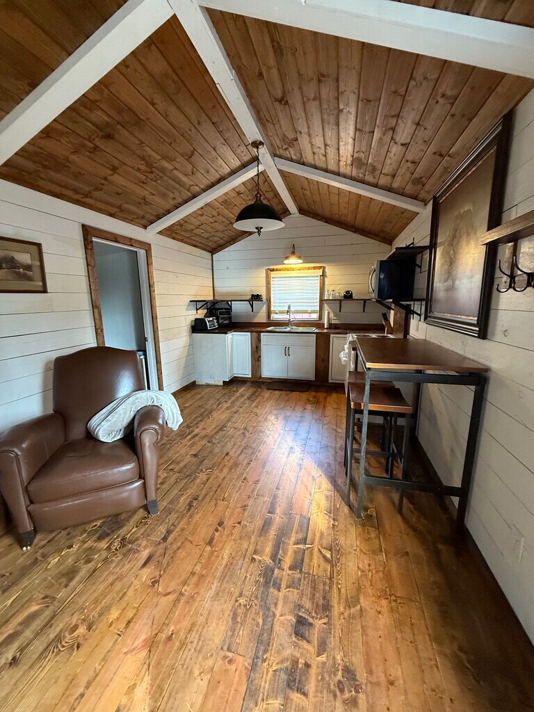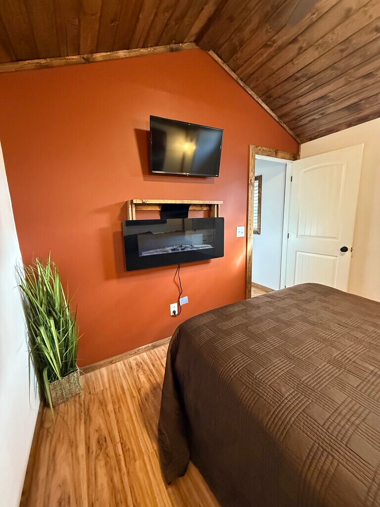 This home is small but it has everything you need. Open concept living area. Living room has a leather recliner, electric fireplace and TV. The full size kitchen has all necessities: microwave, stove/oven, refrigerator with ice/water in door. Keurig coffee machine. Small dinette. Bathroom has a walk-in shower and vessel style sink. The bedroom features a queen sized bed with an electric fireplace and wall mounted TV. Closets and shelving are located on either side of the bed. All linens are supplied. There is full sized washer and dryer in the unit also. Starter cleaning supplies included. Wi-Fi is included for you to stream to TVs. This tiny house is located on a larger property with 2 other homes on it, several barns, deer come thru daily. The home is fully furnished, all you need are your clothes and essentials, it’s quiet and a safe area, the hospital is 9 miles, Facebook is