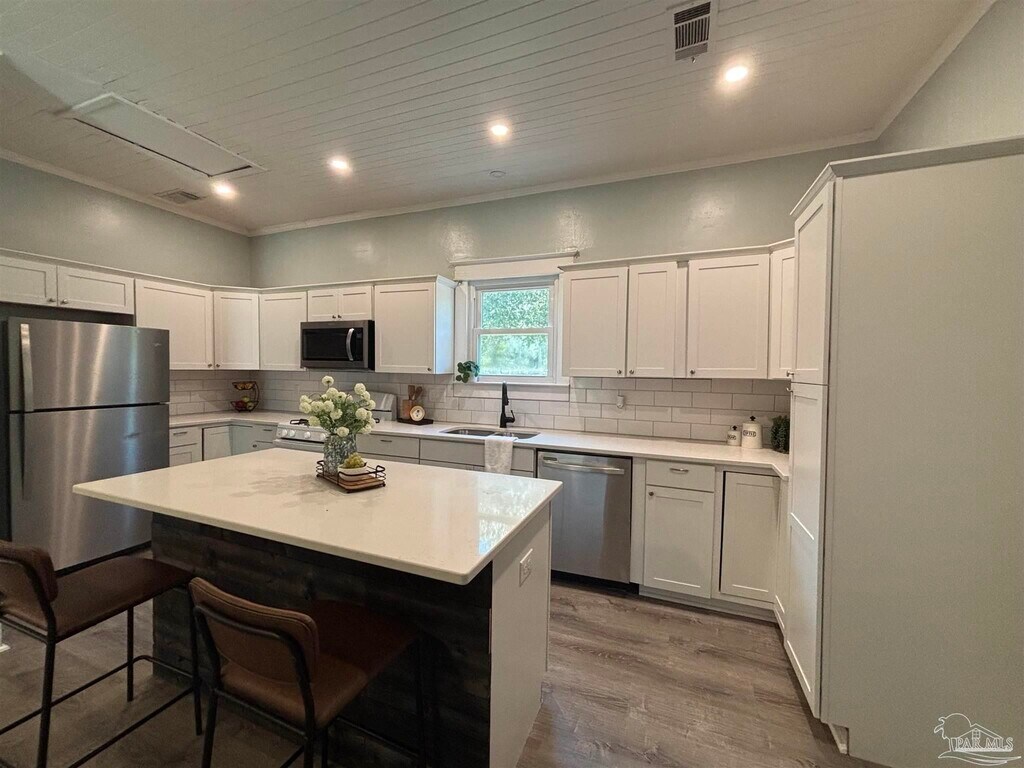 Beautiful Historic home that has been renovated to feature more updated amenities! Wood looking flooring throughout the home ~ Kitchen is fully equipped with Quartz Countertops,Gas stove,Dishwasher,Built In Microwave and Fridge/Freezer ~ HUGE Island for seating plus dining space ~ Both Bathrooms have been updated ~ Laundry room inside comes with Washer and Dryer (as-is) and the home boasts a HUGE fully fenced backyard and beautiful porch to sit out on in the evenings! Desirable location,great schools; about 5 min to I-110 and everything Downtown ~ 15 to Cordova Mall/Airport,15-20 minutes to NAS/Corry Station & 20 to Pensacola Beach **** Please verify all features and dimensions prior to applying or placing a deposit on the home if there are specific items that are important to you *** All of our homes are in very good condition and clean – please give us an opportunity to show you excellent customer service!