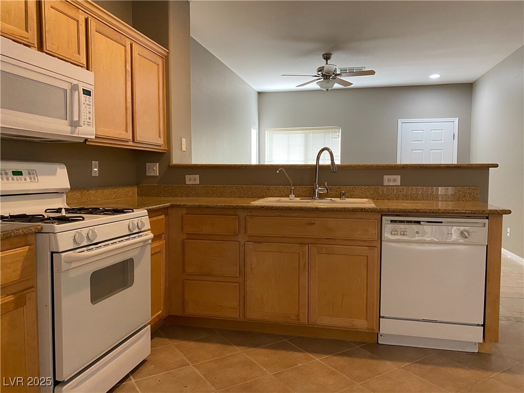Great home in SILVERADO RANCH, 2 mater bedrooms each with its own bathroom, plus a bathroom downstairs, granite counter tops, all appliance included. Balcony off one of the bedrooms upstairs. Spacious walk-in closets. Ample closet room throughout. Brand new carpet, tiled downstairs. HUGE kitchen, opens up into the living room. Blinds, ceiling fans, 1-car garage, fenced back yard with 2 beautiful mature trees for shade and greenery, patio, low-maintenance landscaping front and back. Great location, close to new Costco, St Rose Pkwy, freeway access. Community has parks, barbecue zones, basketball, and walking areas.