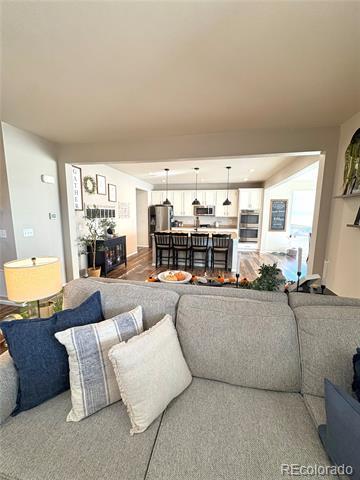 Welcome to this spacious and beautifully maintained five-bedroom, three-and-a-half-bathroom single-family home perfectly located next to the Cherry Creek Trail with no neighbors directly behind you. On the main floor, you will find an open-concept kitchen with a large island that seats four, a walk-in pantry, double ovens, and a connected dining area. The main level also includes a private office with French doors and a sliding glass door that leads to a covered patio. The patio opens to a xeriscaped backyard with four raised garden beds. Upstairs, the primary suite features an en suite bathroom with a dual vanity, private toilet room, and a large walk-in closet. You will also find three additional spacious bedrooms, a full bathroom with dual sinks, and a convenient upstairs laundry room. The upper level has its own separate heating and cooling system and a large loft! The finished basement includes an additional bedroom with an en suite bathroom, a wet bar, and a comfortable living area. There is also plenty of storage space throughout. Enjoy the convenience of living close to parks, trails, and everything Parker has to offer in this stunning move-in-ready home. Single Family Residence MLS# 5165247