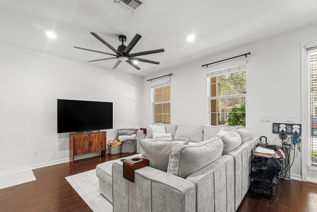 ANNUAL RENTAL ONLY- This beautifully upgraded 3-bedroom, 2.5-bathroom home offers the perfect blend of charm and modern elegance. From the moment you arrive, you'll be welcomed by a classic front porch and dual balconies--ideal for morning coffee or evening unwinding. Step inside to discover real hardwood floors, a light-filled open layout, and a stunning white kitchen complete with granite countertops, sophisticated tile backsplash, and ample storage. Built with quality in mind, this home features CBS construction, impact windows, and a one-car garage for peace of mind and functionality. Nestled in a highly sought-after Windsor Park with resort-style amenities, you'll enjoy the ultimate Florida lifestyle with access to a community pool, fitness center, clubhouse, and more.