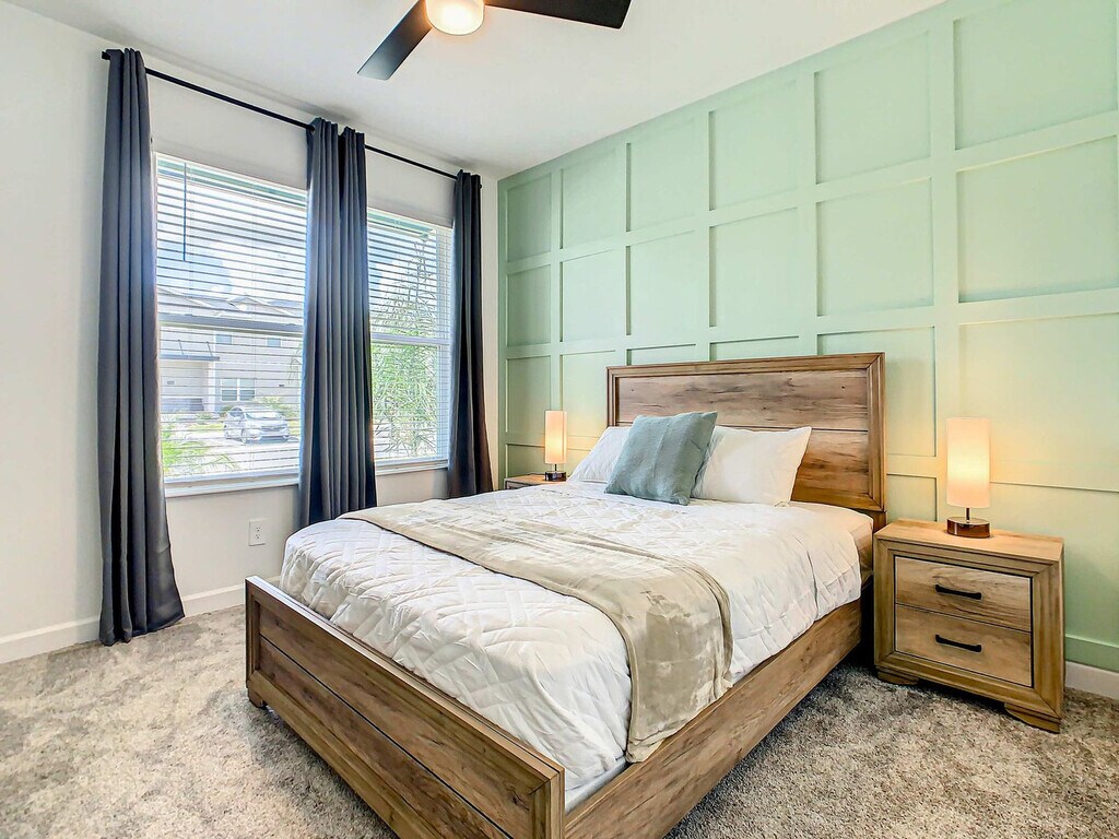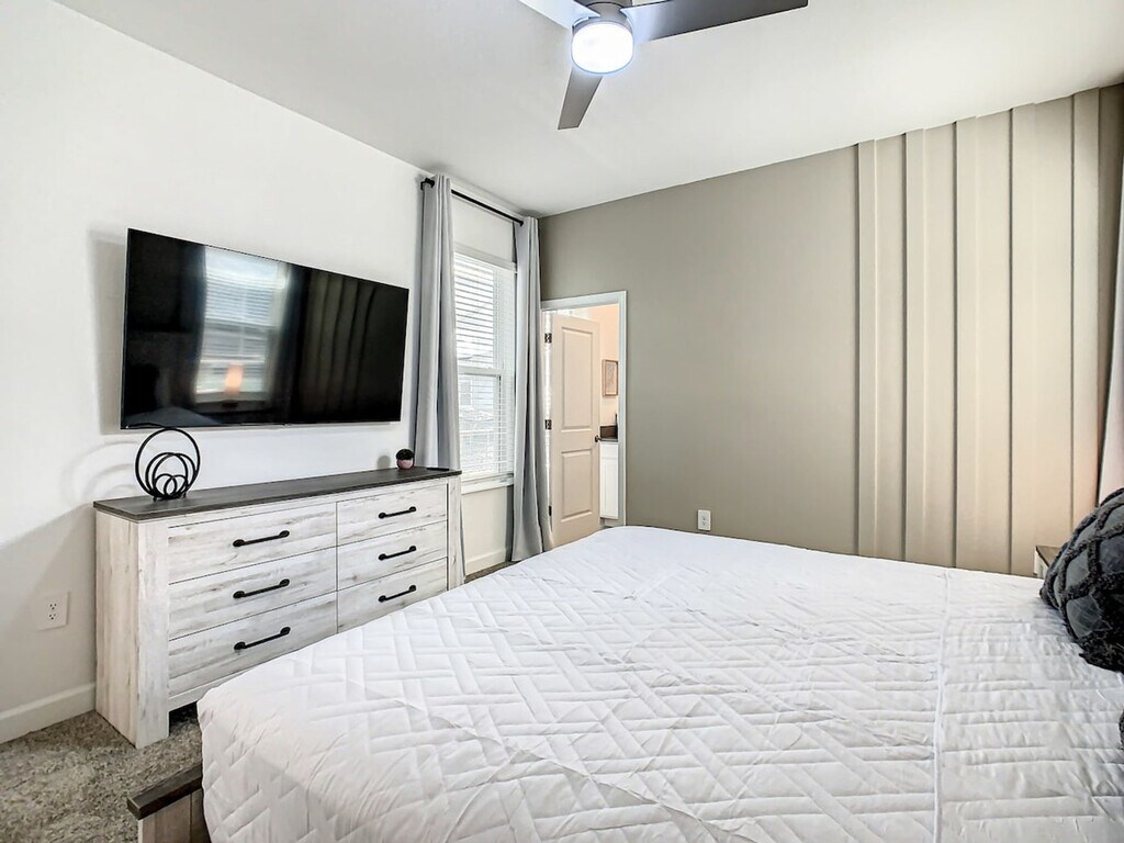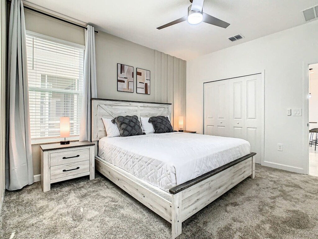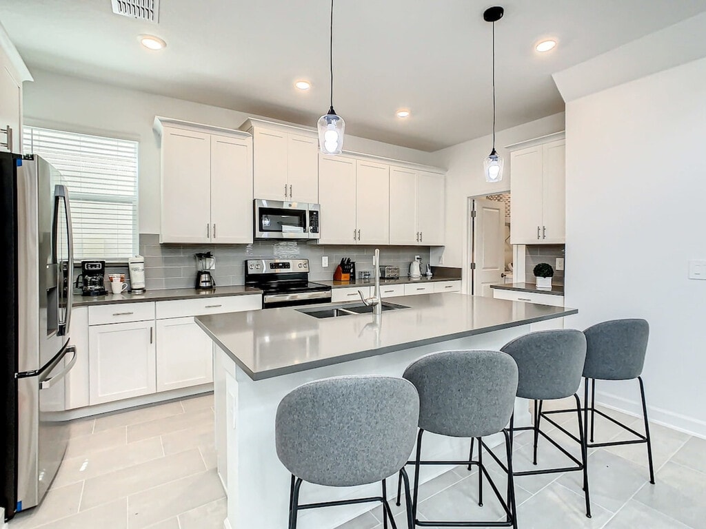 Experience the excitement of the new Epic Universe park just minutes away from this luxurious vacation home. This property offers unbeatable comfort with a private pool and Jacuzzi, a fully equipped kitchen, and a spacious living area. Enjoy the convenience of a garage and free street parking, along with high-speed internet and smart TVs throughout the home. The first floor features a king-size bedroom with a private bathroom, a queen-size bedroom, and a shared bathroom. The second floor includes a bunk bed room, a room with two queen-size beds, and a master bedroom with a king-size bed and en-suite bathroom. A queen-size sofa bed is also available. Indulge in full complimentary access to the resort's amenities, including a gym, heated swimming pools, a lazy river, a water park, and more. The main clubhouse is a short 7-minute drive away, offering additional facilities like a spa, golf, and a family cinema, some of which may incur extra fees. The property itself is equipped with essentials such as bed linens, hair dryers, ironing supplies, and a washer/dryer. Optional services are available for an additional cost, including a pack and play, high chair, early check-in, and late check-out. Enjoy unlimited access to two luxury clubhouses and a private pool and Jacuzzi, though the Jacuzzi is not heated. Additional fees apply for certain resort amenities like the spa and golf. Located in a prime area, this property is close to major attractions such as Sea World, Universal Studios, and Disney World, all within a short drive. Nearby, you'll find shopping outlets, supermarkets, and a variety of dining options. Transportation is convenient with Uber and Lyft services available, and several medical facilities are within easy reach. Guests must be at least 18 years old to book a reservation. The property is strictly for vacation use, and no unregistered guests, smoking, or pets are allowed. Check-in is keyless, with codes provided prior to arrival. A safety protocol is in place to ensure the well-being of guests and staff. A $2,000 security deposit is required for stays of 28 days or more, refundable upon check-out if no damage or deep cleaning is needed. The property features high-speed internet and multiple smart TVs, making it ideal for remote work or entertainment. A laptop computer is not included. [SI]