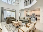 Experience the excitement of the new Epic Universe park just minutes away from this luxurious vacation home. This property offers unbeatable comfort with a private pool and Jacuzzi, a fully equipped kitchen, and a spacious living area. Enjoy the convenience of a garage and free street parking, along with high-speed internet and smart TVs throughout the home. The first floor features a king-size bedroom with a private bathroom, a queen-size bedroom, and a shared bathroom. The second floor includes a bunk bed room, a room with two queen-size beds, and a master bedroom with a king-size bed and en-suite bathroom. A queen-size sofa bed is also available. Indulge in full complimentary access to the resort's amenities, including a gym, heated swimming pools, a lazy river, a water park, and more. The main clubhouse is a short 7-minute drive away, offering additional facilities like a spa, golf, and a family cinema, some of which may incur extra fees. The property itself is equipped with essentials such as bed linens, hair dryers, ironing supplies, and a washer/dryer. Optional services are available for an additional cost, including a pack and play, high chair, early check-in, and late check-out. Enjoy unlimited access to two luxury clubhouses and a private pool and Jacuzzi, though the Jacuzzi is not heated. Additional fees apply for certain resort amenities like the spa and golf. Located in a prime area, this property is close to major attractions such as Sea World, Universal Studios, and Disney World, all within a short drive. Nearby, you'll find shopping outlets, supermarkets, and a variety of dining options. Transportation is convenient with Uber and Lyft services available, and several medical facilities are within easy reach. Guests must be at least 18 years old to book a reservation. The property is strictly for vacation use, and no unregistered guests, smoking, or pets are allowed. Check-in is keyless, with codes provided prior to arrival. A safety protocol is in place to ensure the well-being of guests and staff. A $2,000 security deposit is required for stays of 28 days or more, refundable upon check-out if no damage or deep cleaning is needed. The property features high-speed internet and multiple smart TVs, making it ideal for remote work or entertainment. A laptop computer is not included.