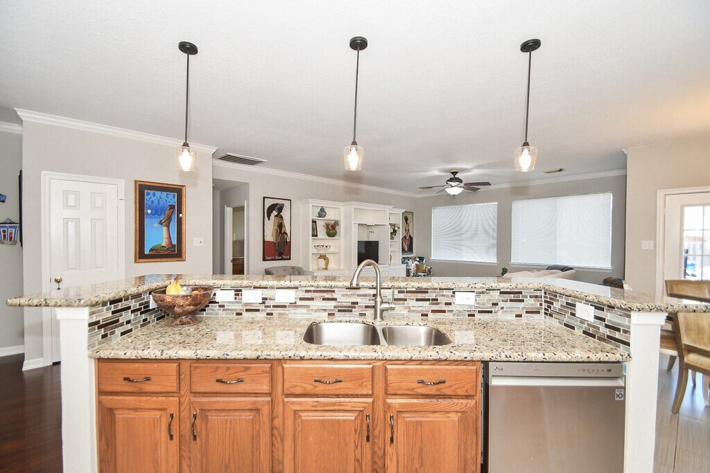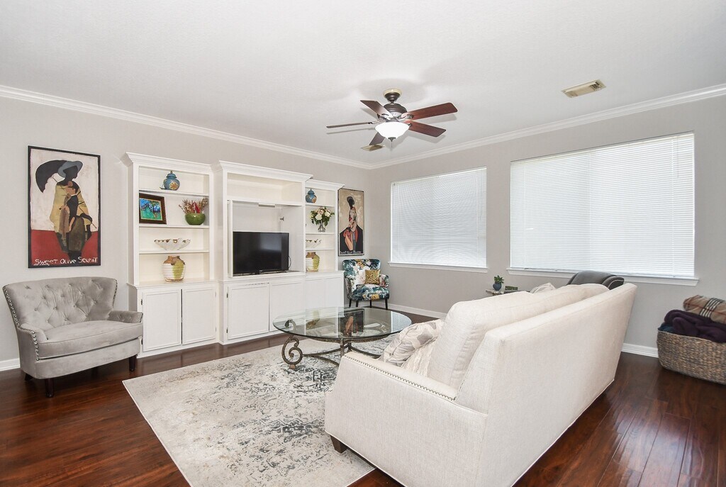 Beautiful two story home featuring 3 bedrooms and 2.5 baths located in a quiet,desirable neighborhood. This home offers an open-concept floor plan with tile and laminate flooring throughout (no carpet). Abundant natural light fills the space,creating a bright and inviting atmosphere. The gourmet kitchen boasts granite countertops,stainless steel appliances,a breakfast bar,and tile flooring. The spacious primary suite includes a suite bathroom with double sinks,granite countertops,and tile flooring. Upstairs,you’ll find a generously sized game room,perfect for entertaining or additional living space. Additional features include a sprinkler system for easy lawn maintenance. Conveniently located with easy access to Highways 6,59,and 90. Zoned to Dulles High School. Washer,dryer,and refrigerator are included. MLS# 54265142
