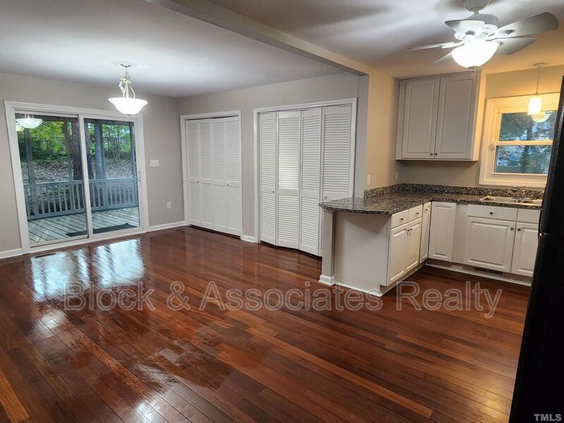 Available Now. Great updated ranch home in convenient location. Brazilian wood floors in living and dining rooms. Living room has vaulted ceiling and wood burning fireplace. Kitchen has all appliances and granite counters. Master bath has double sink. Two other decent size bedrooms. Screen porch in back overlooks private, shaded, fenced yard. Convenient to shopping and highways. Welcome home! Please see Block & Associates website at for most accurate property details, photos, and application.