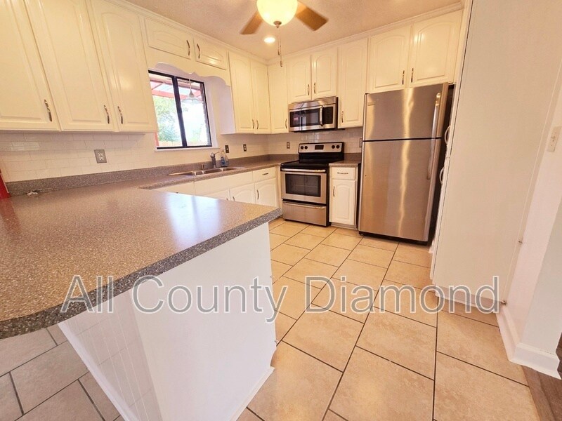 Welcome to this updated 3-bedroom, 2-bathroom home, perfect for modern living! Located in the heart of Lynn Haven, this home features newly tiled bathtubs, spacious bedrooms with ample storage, and sleek LVP floors throughout. The kitchen is fully equipped with a stove, refrigerator, dishwasher, and soft-close cabinets. Enjoy the open-plan living/dining area with a cozy fireplace. The fenced backyard with a patio is ideal for outdoor fun and relaxation. Situated on a corner lot, it offers extra yard space and a two-car garage for parking and storage. Perfect for families and professionals, this home is conveniently close to schools, parks, and shopping. Schedule a viewing today and make this wonderful home yours!