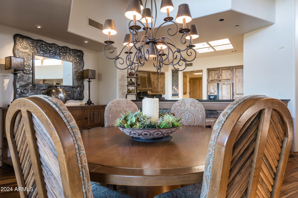 Step into luxury desert living at Apache Cottage in Desert Mountain. This stand-alone residence boasts a seamless blend of sophistication and comfort,featuring a unique design with zero interior steps and an open floor plan that exudes a cozy and spacious atmosphere. Discover tranquility in the Master Ensuite,along with two additional bedrooms for guests,while a third bedroom doubles as a den with a convenient queen-size Murphy bed for versatility. Situated on the East side end of the Apache driving range,enjoy breathtaking vistas of the lush greenery,majestic mountain peaks,vibrant sunsets,and the twinkling lights of Desert Mountain at night. Entertain effortlessly with a built-in BBQ on the back patio,offering dining options complemented by both indoor and outdoor living spaces,perfect for year-round enjoyment of the Arizona climate. Convenience meets luxury with a large two-car garage for parking,and the added amenity of a private village pool for relaxation and recreation. This exquisite retreat comes fully furnished,ensuring a seamless transition into your desert oasis,and is conveniently located near walking paths for those seeking outdoor adventures. Experience the epitome of desert living at Apache Cottage,where every detail is crafted to perfection for your ultimate comfort and enjoyment.