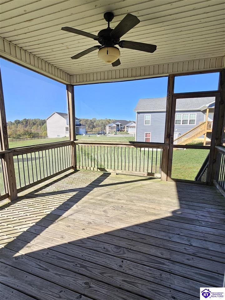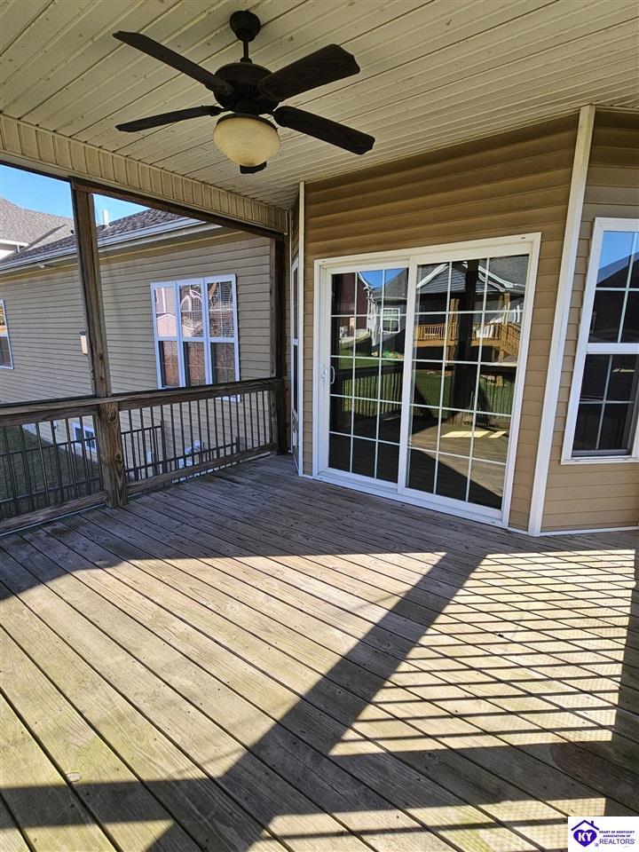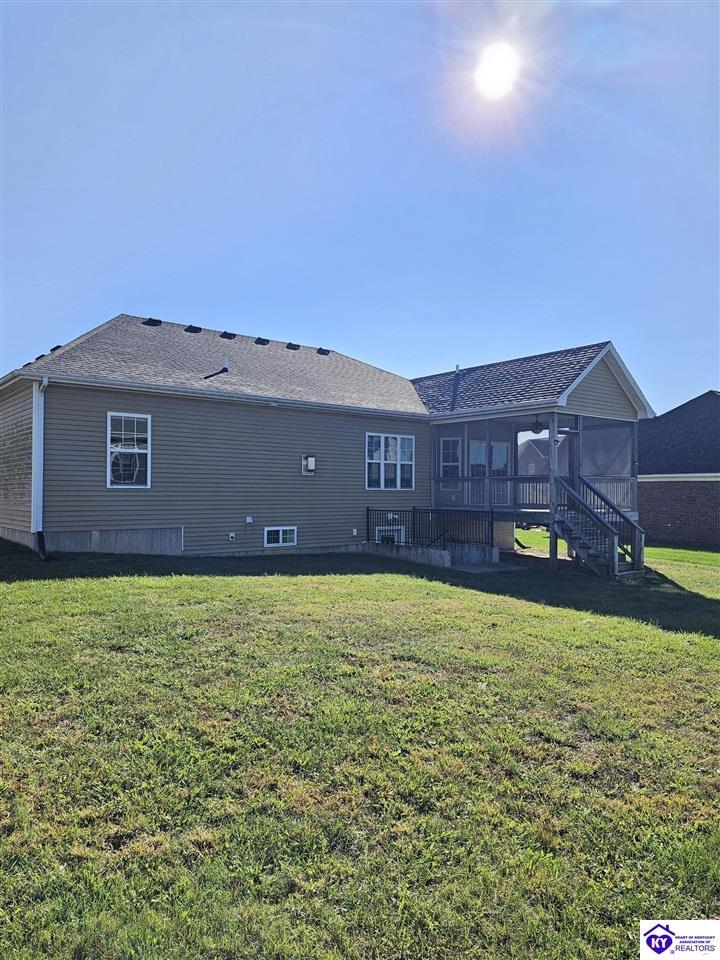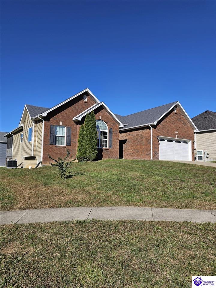 Gorgeous, ranch style home with over 2,000sqft of living space situated on a nice size lot on a cul-de-sac in the growing community of Cowley Crossing in Elizabethtown! This home boasts hardwood and tile flooring, an open floor plan with vaulted ceilings, a cozy gas fireplace in the living room and separation for the primary suite from the guest bedrooms. The kitchen features granite countertops, tile backsplash, full appliance package, and a pantry! Off of the dining area is covered, screened back deck great for relaxing or entertaining! The primary bedroom and en suite include a walk-in closet, double vanities with granite countertops, a whirlpool tub, and separate shower. As an added bonus, the entire main level got a fresh coat of paint with a light, neutral color just one year ago! In the basement you'll find a large family room with plenty of space for a recreation area and a massive storage, and there is a door that conveniently walks out to the backyard. This home is convenient to Ft. Knox and I-65!