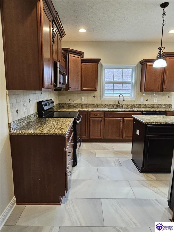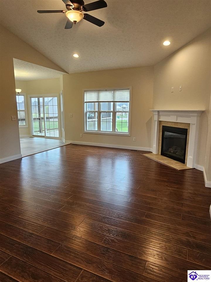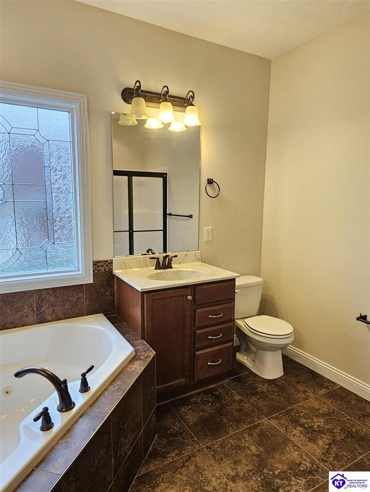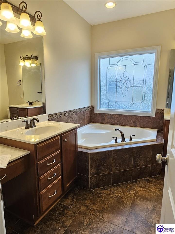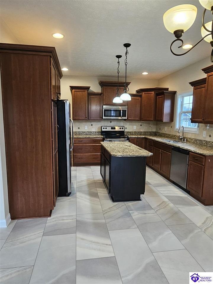 Gorgeous, ranch style home with over 2,000sqft of living space situated on a nice size lot on a cul-de-sac in the growing community of Cowley Crossing in Elizabethtown! This home boasts hardwood and tile flooring, an open floor plan with vaulted ceilings, a cozy gas fireplace in the living room and separation for the primary suite from the guest bedrooms. The kitchen features granite countertops, tile backsplash, full appliance package, and a pantry! Off of the dining area is covered, screened back deck great for relaxing or entertaining! The primary bedroom and en suite include a walk-in closet, double vanities with granite countertops, a whirlpool tub, and separate shower. As an added bonus, the entire main level got a fresh coat of paint with a light, neutral color just one year ago! In the basement you'll find a large family room with plenty of space for a recreation area and a massive storage, and there is a door that conveniently walks out to the backyard. This home is convenient to Ft. Knox and I-65!