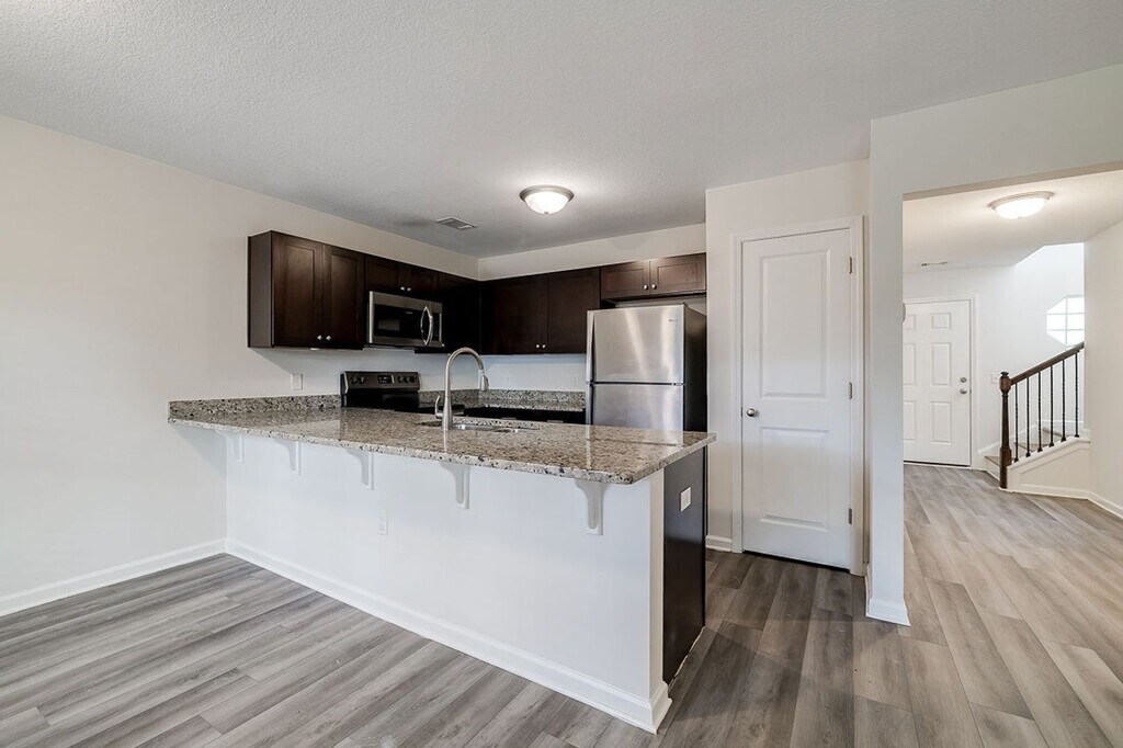 Welcome to this spacious 3-bedroom, 2.5-bath townhome conveniently located in the heart of Rincon, GA, just minutes from Rincon Elementary School, shopping, and dining. All bedrooms are located upstairs, offering added privacy and a comfortable layout. The main level features an open-concept living and dining area, perfect for everyday living and entertaining. The kitchen is equipped with stainless steel appliances, granite countertops, and ample cabinet space, while luxury vinyl plank flooring runs throughout the main living areas. Additional features include a one-car garage, washer and dryer hookups, and landscaping included for low-maintenance living. Pets are negotiable; restrictions may apply. Pictures are for illustration purposes only and colors/finishes may vary.