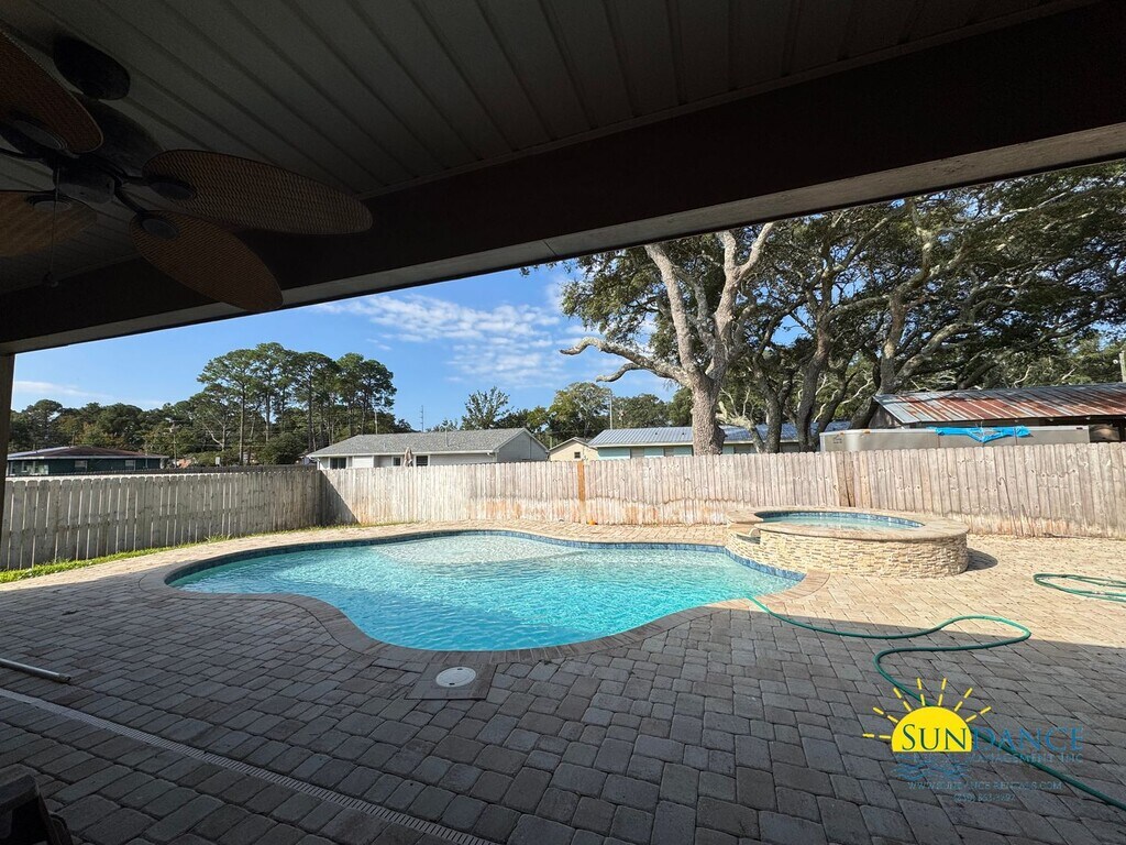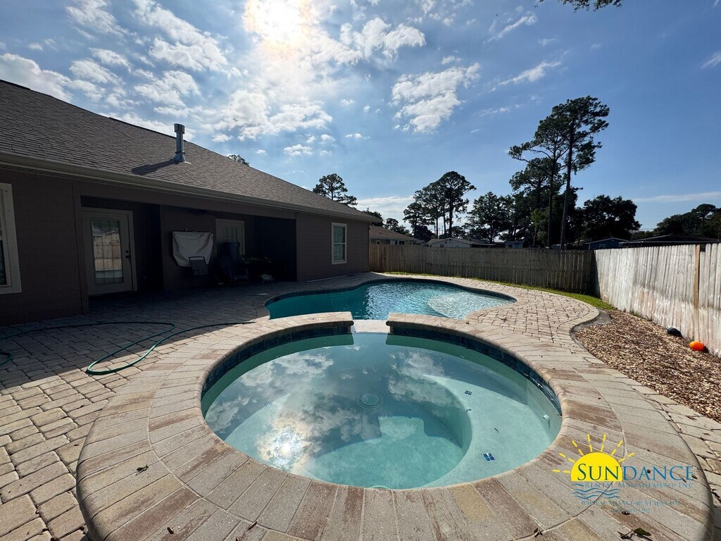Centrally located in Fort Walton Beach near Highway 98, this beautiful 4-bedroom, 2-bathroom home offers convenient access to both military bases, schools, shopping, and dining. With a 2-car garage and spacious driveway, this property is a true must-see. Inside, you'll find a spacious living room with a beautiful tray ceiling and mounted TVs (as-is). The fireplace is non-functional, but adds a cozy visual feature to the space. The kitchen is designed for modern living, featuring a breakfast bar, stainless steel appliances, gas stove, granite countertops, and an adjacent dining area. The primary suite includes a tray ceiling, walk-in closet, dual vanities, a garden tub, and a separate stall shower. Three additional well-sized bedrooms and a full bathroom provide plenty of space for family or guests. A laundry room with washer and dryer included completes the interior. Outside, enjoy the covered patio and partially fenced backyard—perfect for relaxing or entertaining. The property also features a heated pool/hot tub, with pool maintenance included. Additional conveniences include a Ring doorbell and smart lock system. Pets are accepted with $250 per pet non-refundable pet fee + $50 admin fee (Subject to Owner Approval) No smoking is permitted. In addition to the rental amount, all Sundance Rental Management residents are enrolled in the Resident Benefits Package (RBP) for $29.00/month. This includes the required $300K liability insurance, credit building to help boost the resident’s credit score with timely rent payments, and much more! Full details of the benefits can be found on our website under Tenant FAQ.